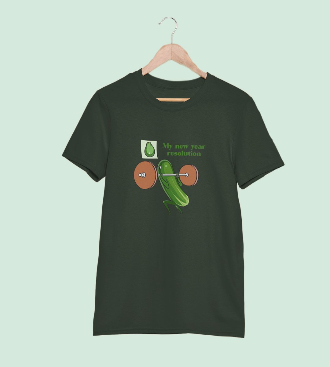 Resolution Green Printed T-shirt For Mens On New Year Theme Best Gift For New Year
