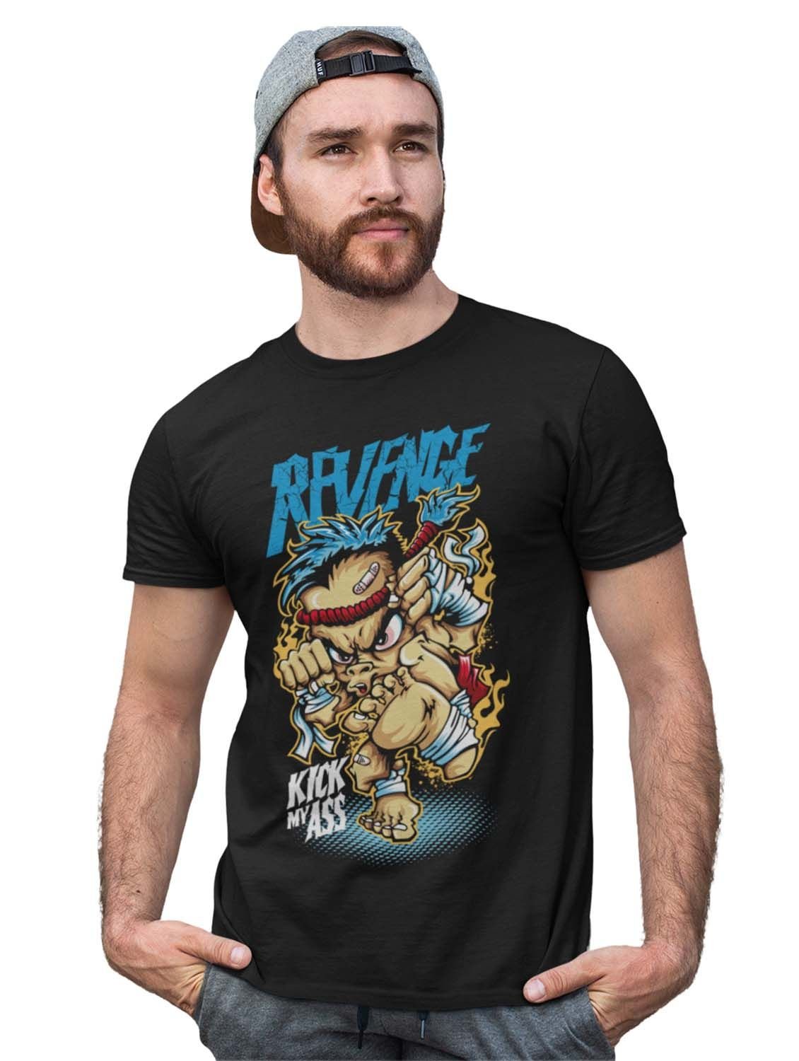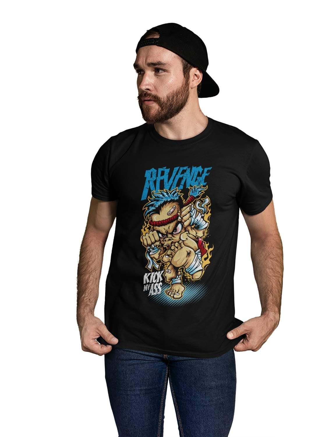 Revenge Black Round Neck Cotton Half Sleeved T-Shirt with Printed Graphics