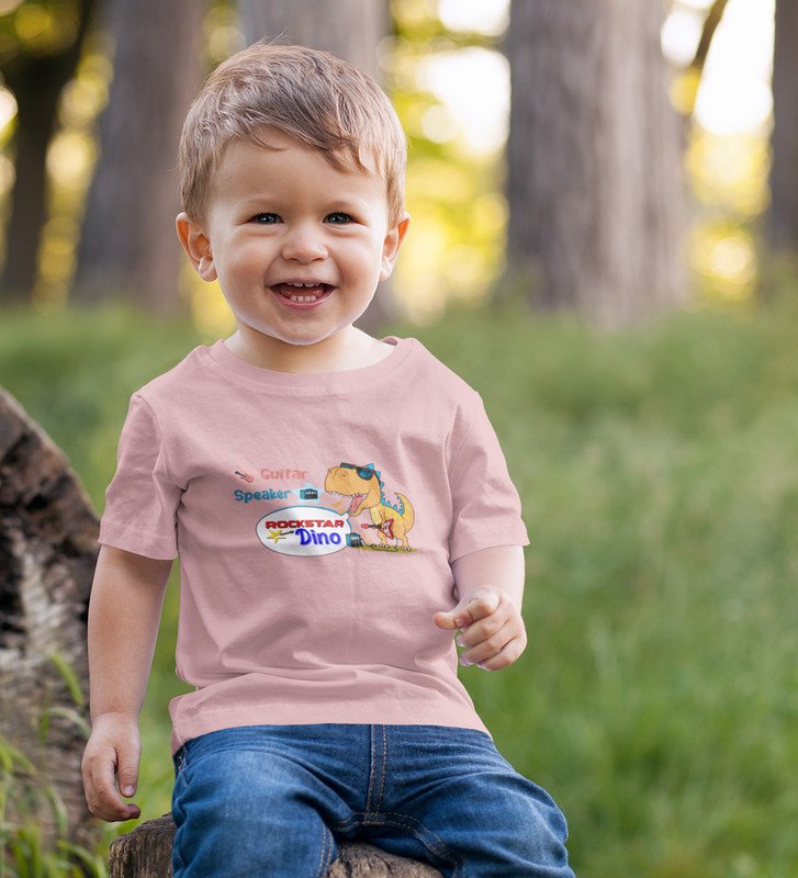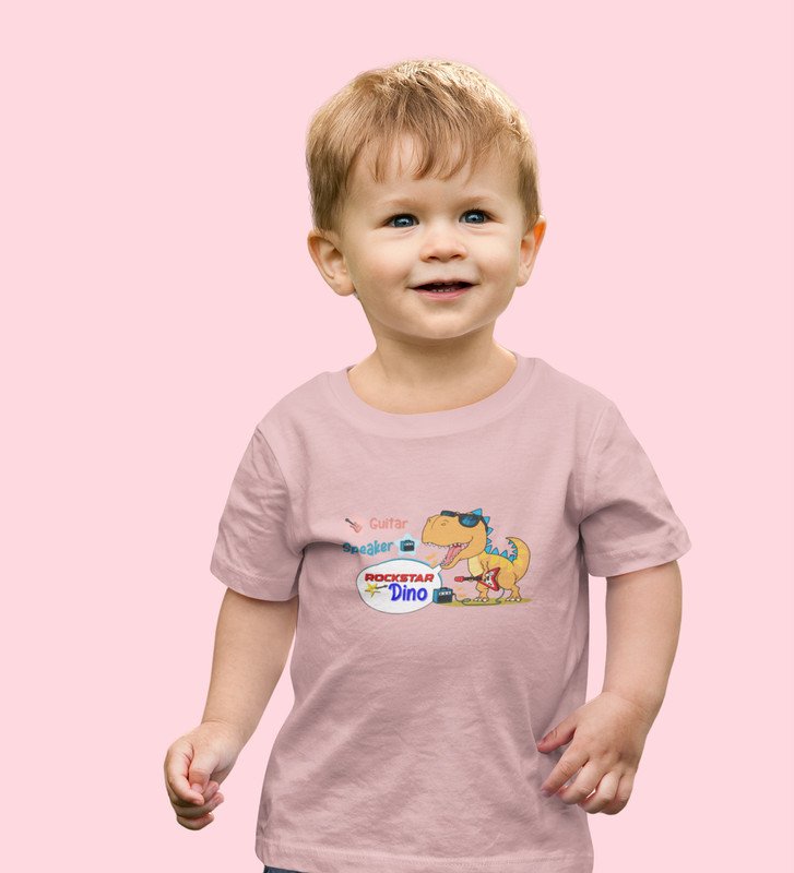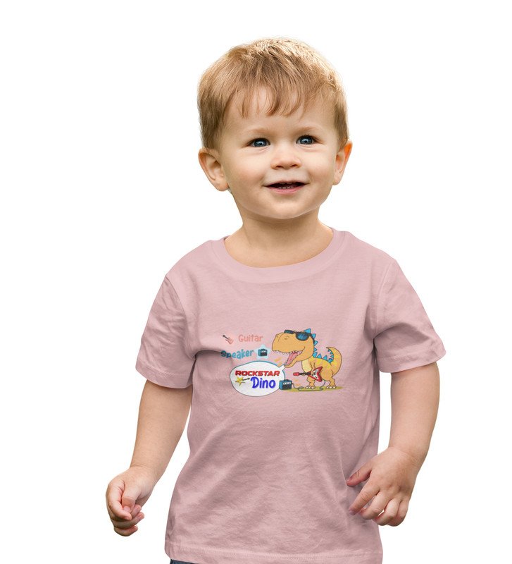 Rockstar Dino, Boys Printed Crew Neck Tshirt (baby pink)