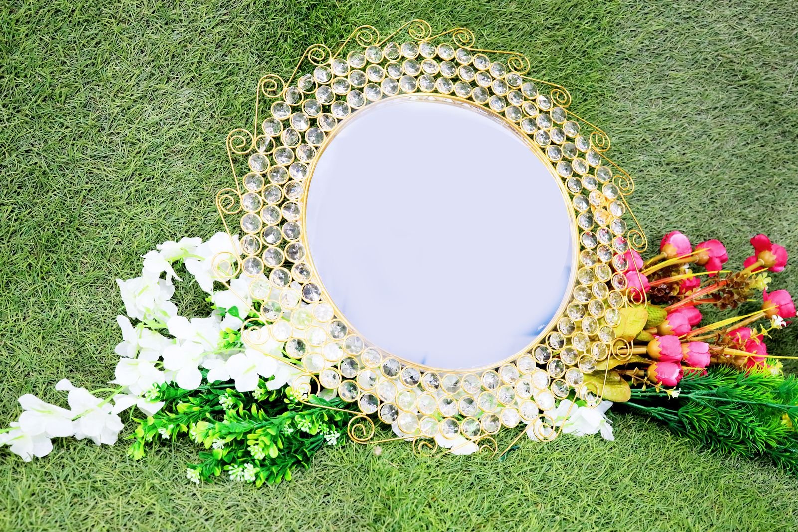 Royal crystal round mirror for wall home and decore beautiful Vibrant object - usable - Gifting Items Ideal for All Occasions