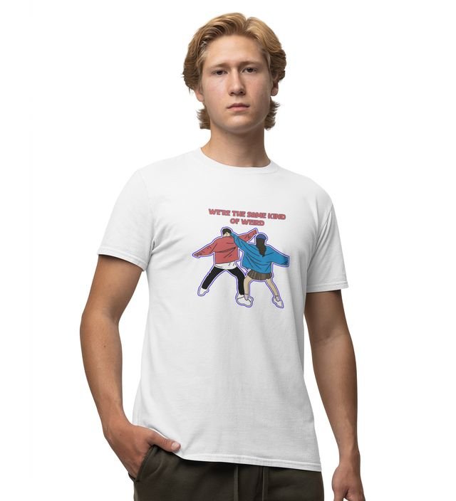Same Kind Of Wierd White Round Neck Cotton Half Sleeved Men T Shirt with Printed Graphics