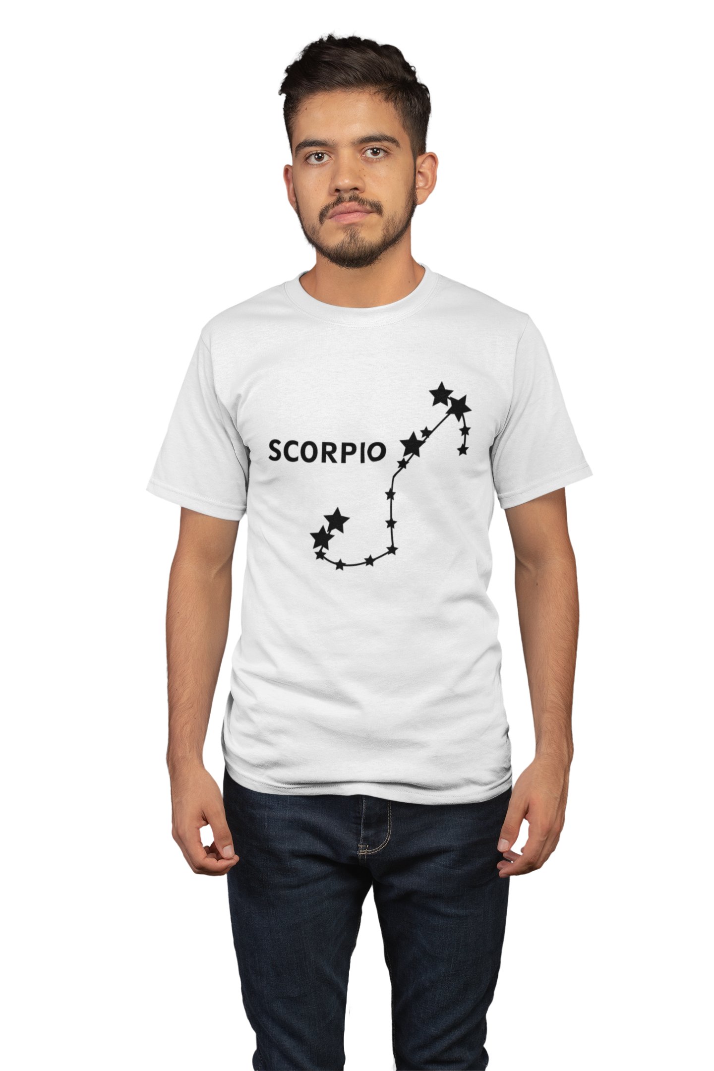 Scorpio stars (BG Black) (White T) - Printed Zodiac Sign Tshirts - Made especially for astrology lovers people