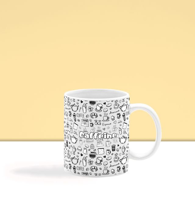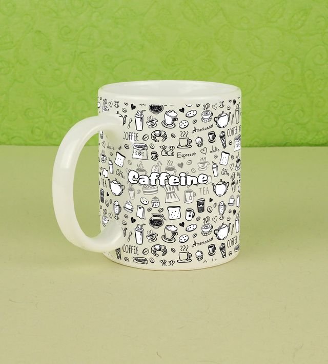 Scribbled Cafe Icons with Caffeine Word Art Printed Coffee Mug 250ml