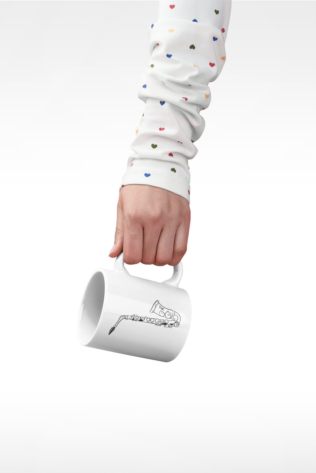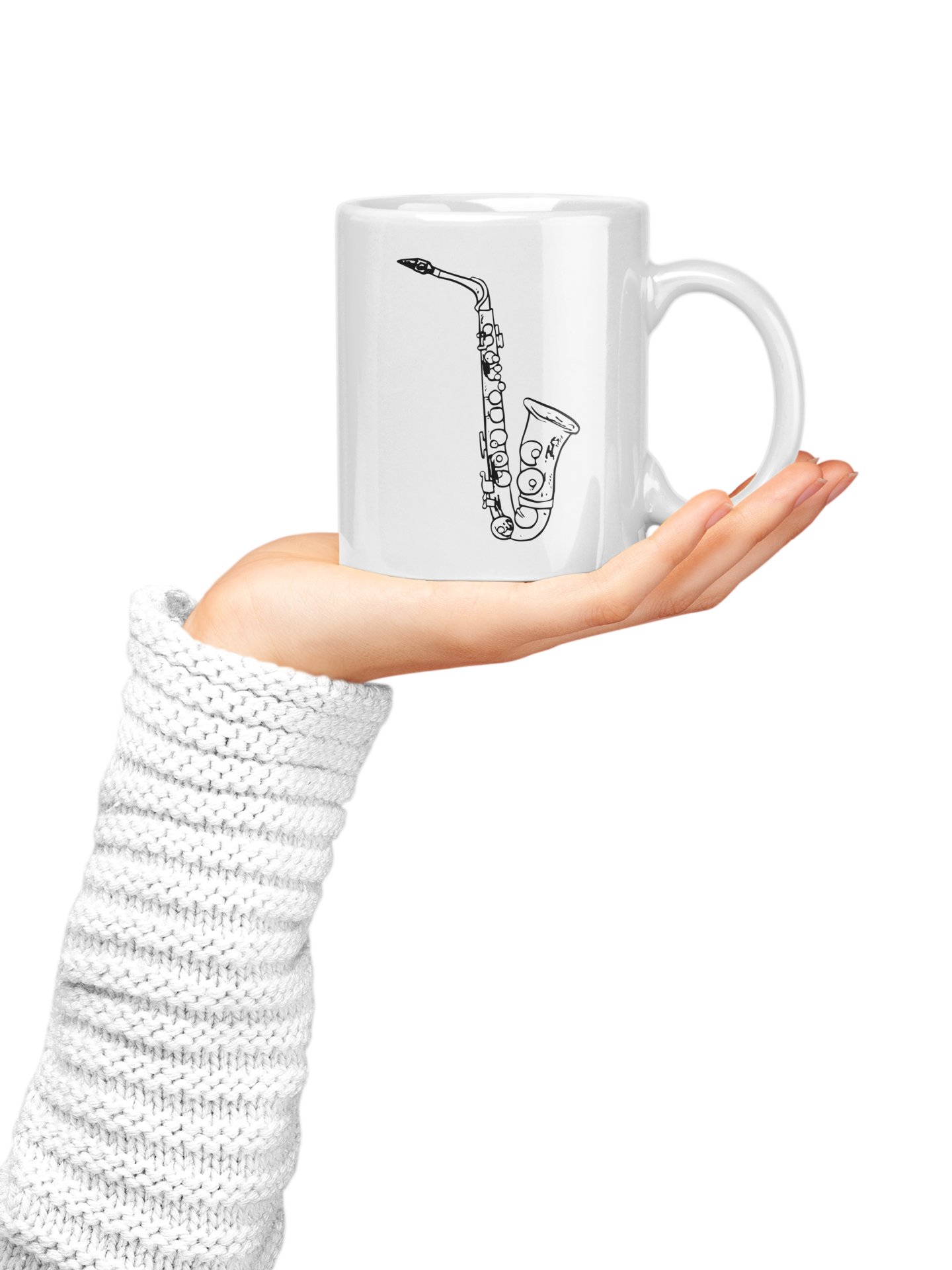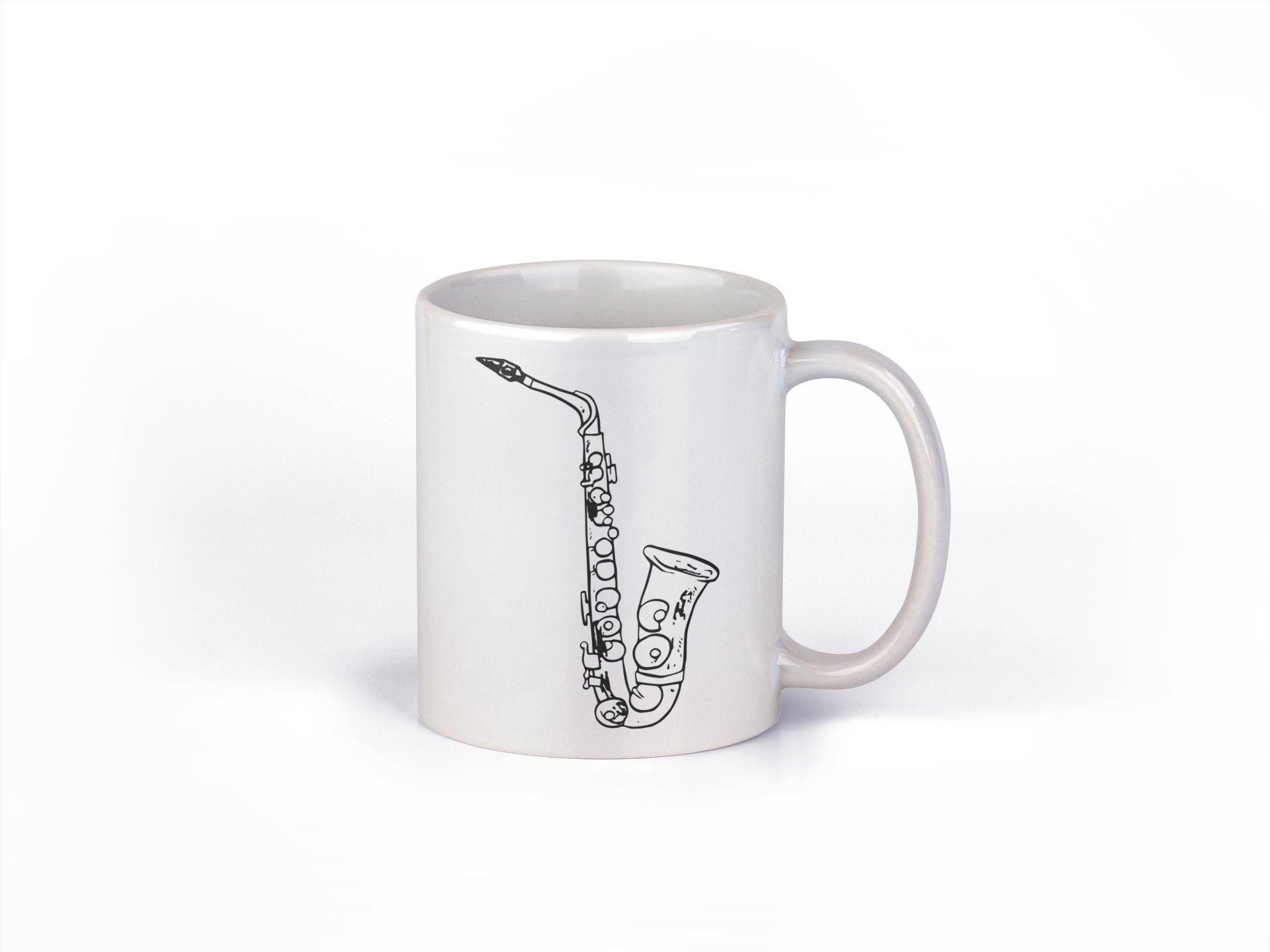 Sexaphone, black lines - music themed printed ceramic white coffee and tea mugs/ cups for music lovers