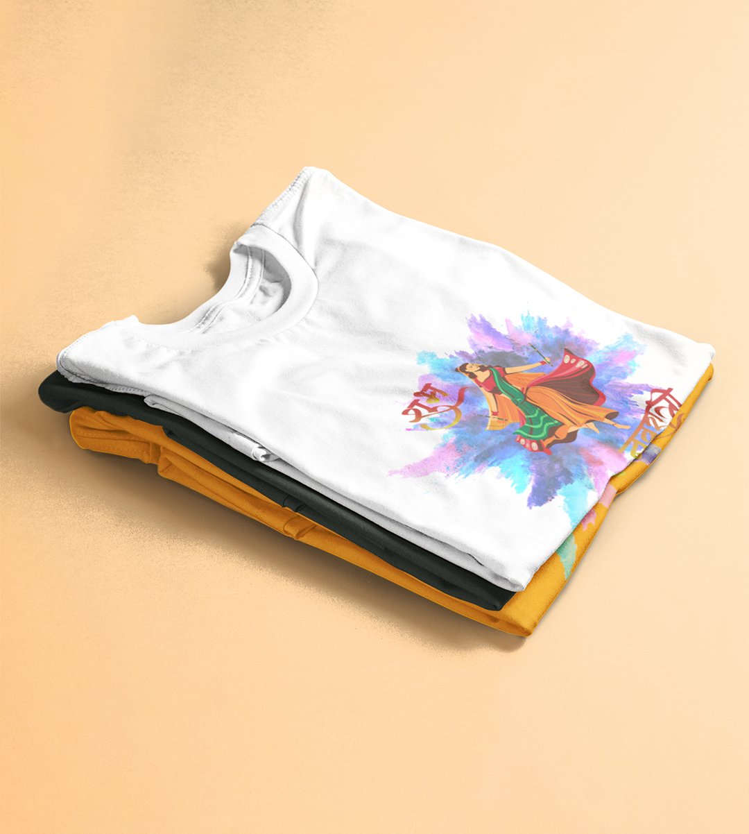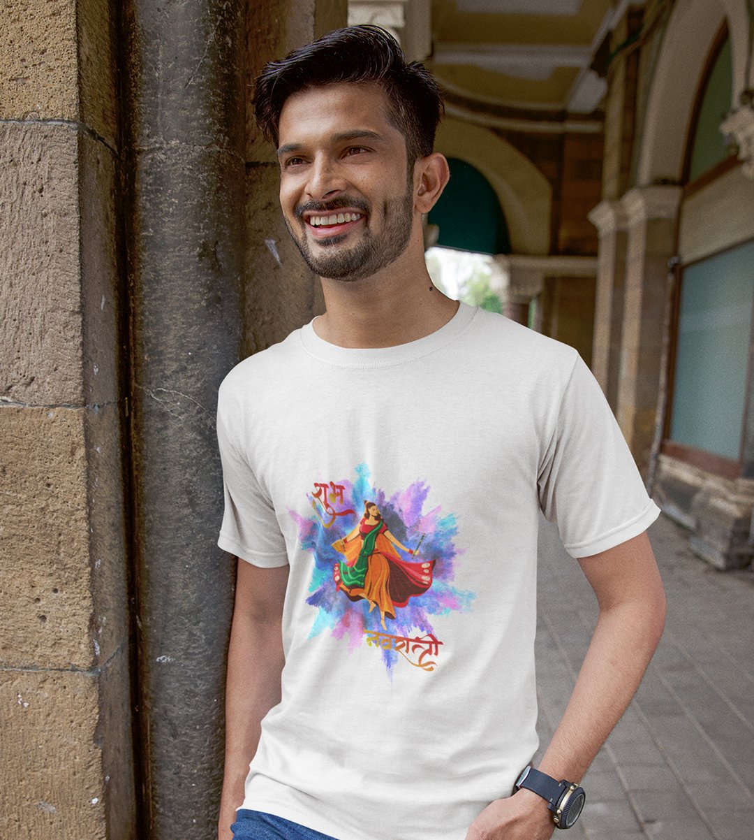 Navratri is a very auspicious festival for hindus. It takes place at the beginning of October and sometimes September. Enjoy the 9 days of festivities with full zeal and make yourself submerged in the love of Maa Durga. Navratri is also known as Durga Puja. And with this Tees, you can shine like a star during this festive season with our navratri themed cotton half sleeved Tshirts. You can pair our t-shirts with trousers and denim of your choice and make it a weekday smart casual or weekend wear. This is durable. This tshirt is smooth and soft which makes you comfortable to wear during all seasons. The printing in it is durable and odourless. It has five sizes, S,M,L,XL,XXL. The Tshirt colour is intact even after repeated washes. It can be kept in your wardrobe and hangers. Please avoid washing mashine to clean this Tee, it may affect the print. Hand wash only. We have brought you many navratri related designs printed on our different colour Tshirts to choose from. Grab it now.