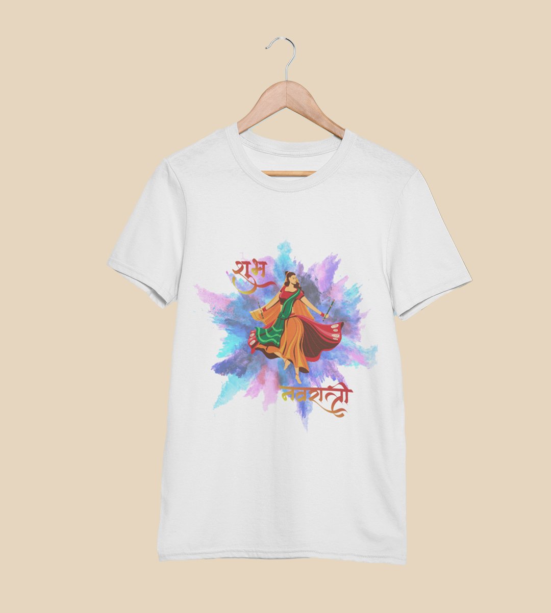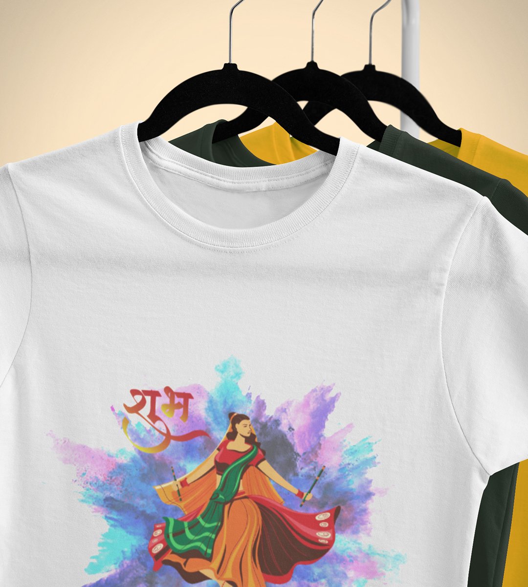 Shubh Navratri blasted colours printed unisex adults round neck cotton half-sleeve white tshirt specially for Navratri festival/ Durga puja