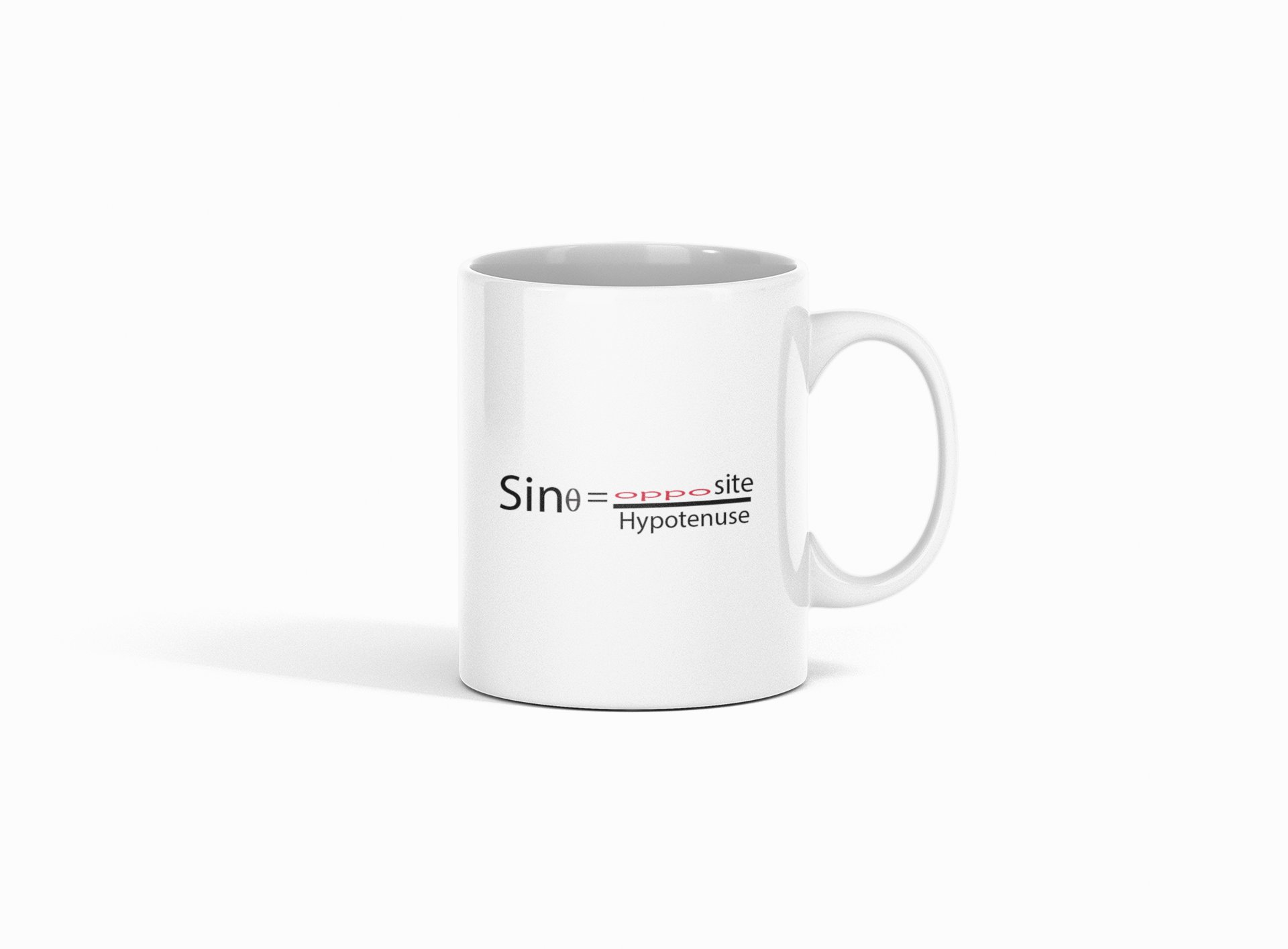 Sin Thita=opposite/hypotenuse (Dif design) - formula themed printed ceramic white coffee and tea mugs/ cups for maths lovers