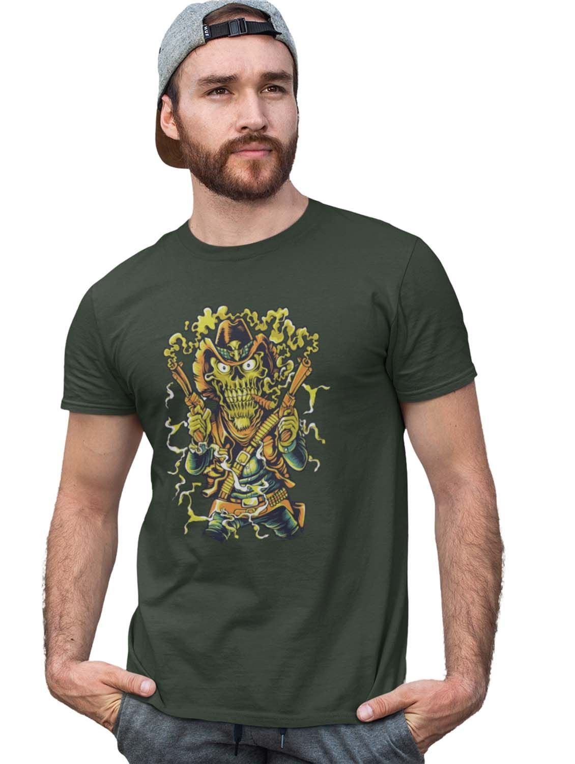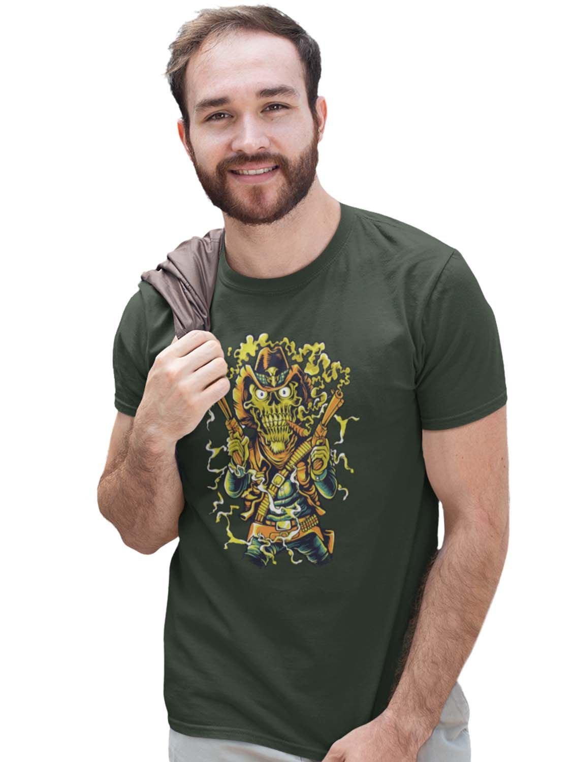 The Cowboy Green Round Neck Cotton Half Sleeved T-Shirt with Printed Graphics