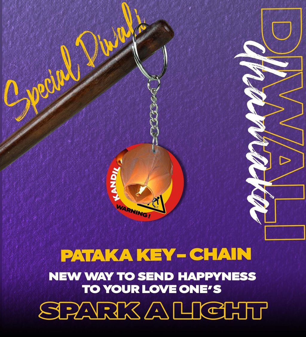 "Spread the Spirit of Diwali with a Fun Pataka Keychain Gift - Printed Round Keychain Pack of 2"