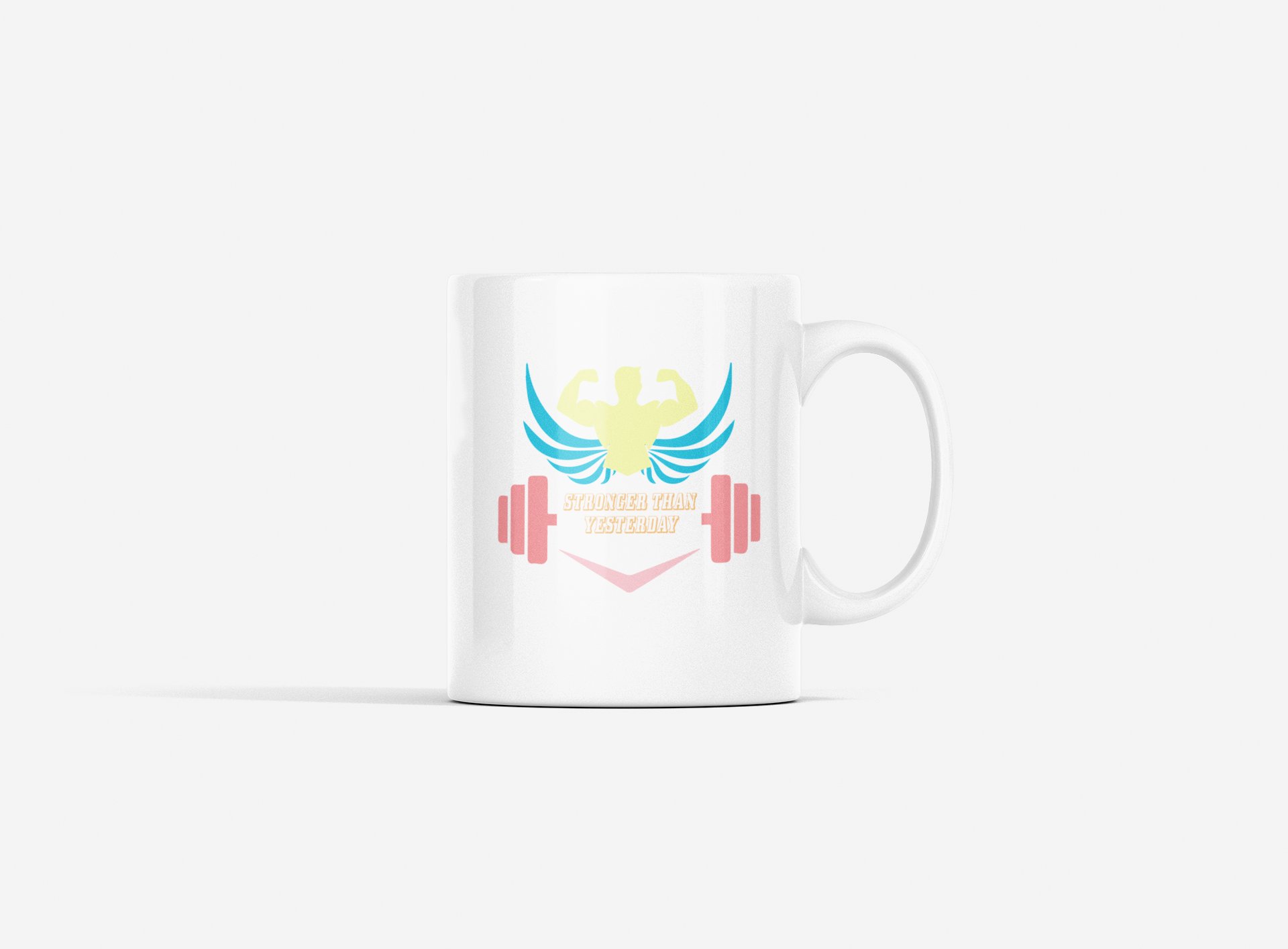 Stronger Than Yesterday, (BG White, Red and Yellow) - gym themed printed ceramic white coffee and tea mugs/ cups for gym lovers