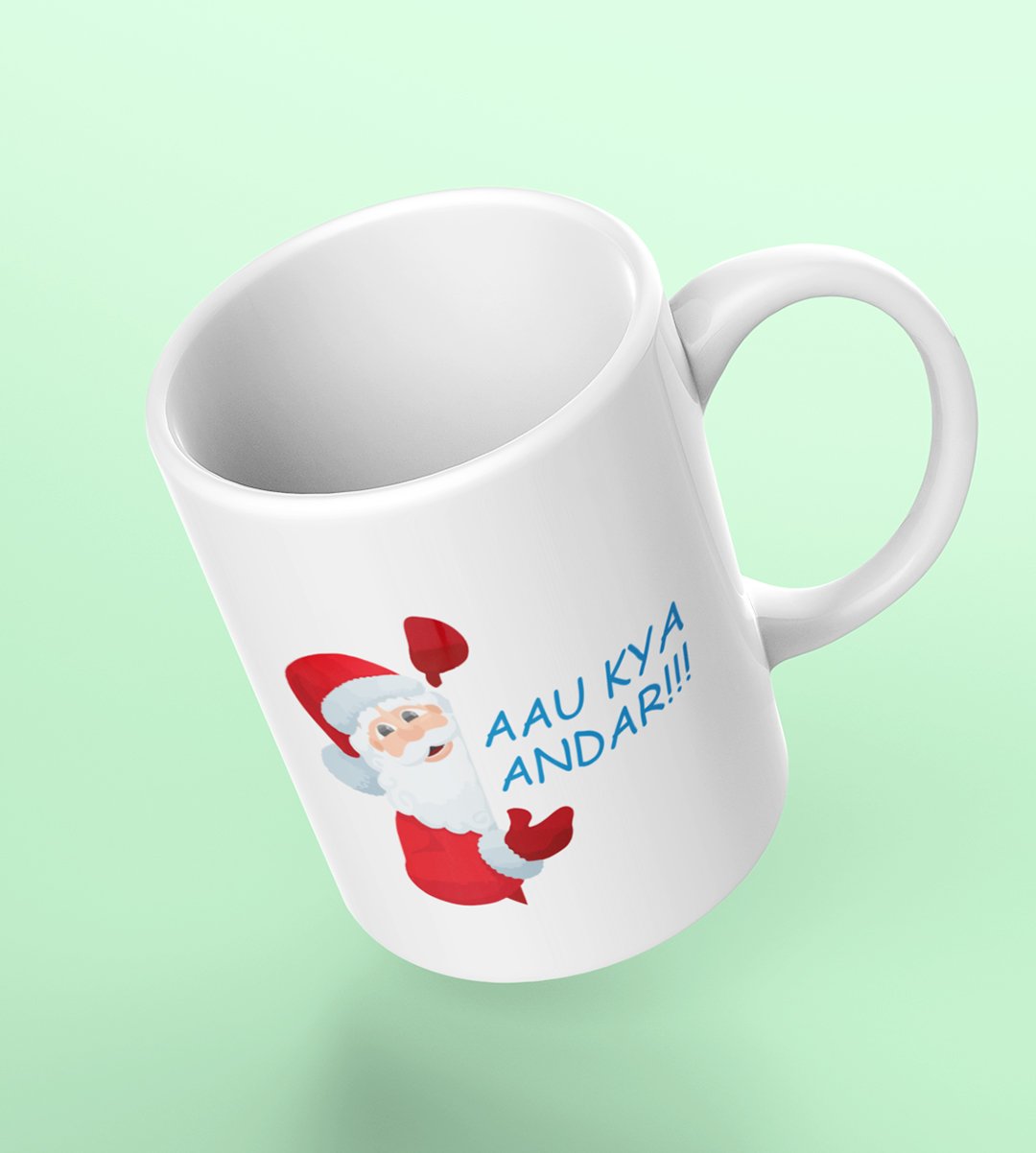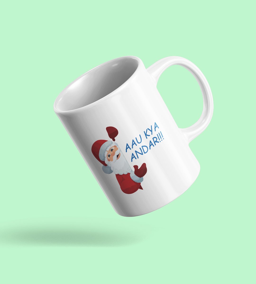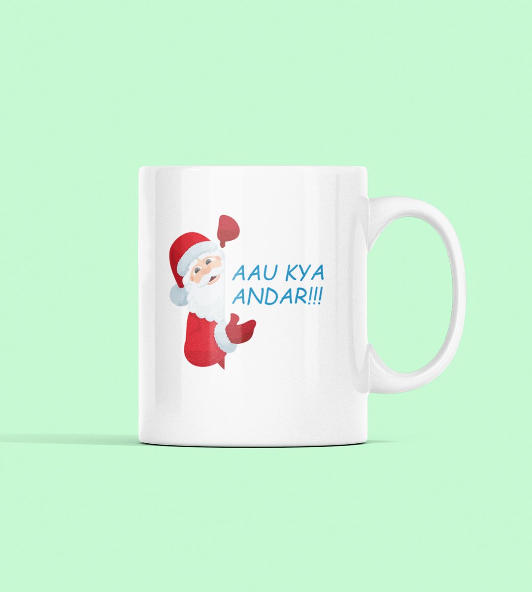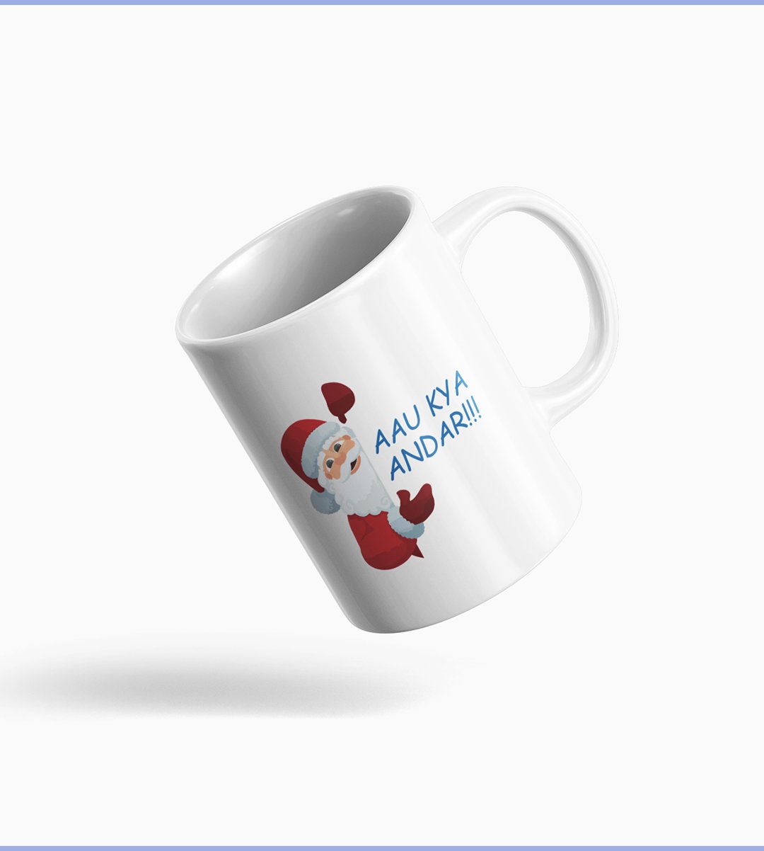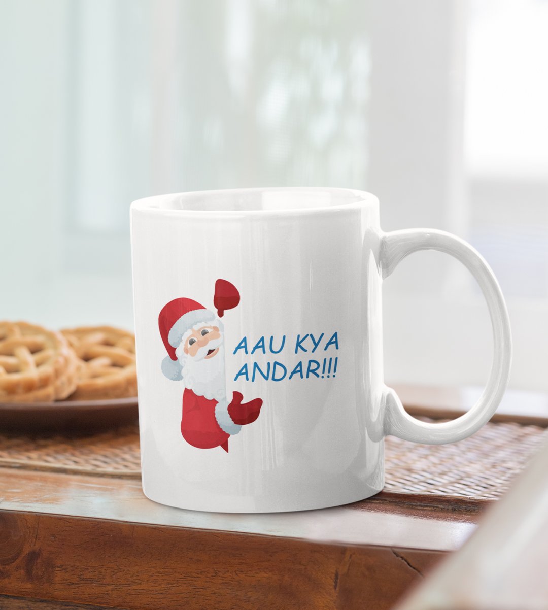 Supper Funny Santa AAU KYA ANDAR!!! Coffe Mug Jolly Jingle Bells Printed Mug - Festive Cheer in a Ceramic Coffee Cup