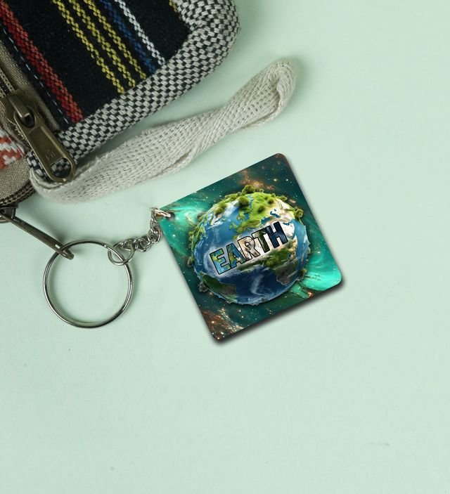 Sustainable Earth Concept in Stylish Print Printed Keychain Pack of 2