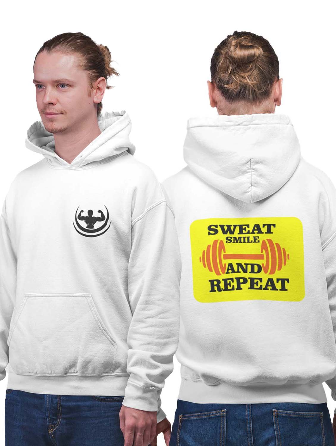 Sweat, Smile And Repeat, (BG Yellow) printed artswear white hoodies for winter casual wear specially for Men