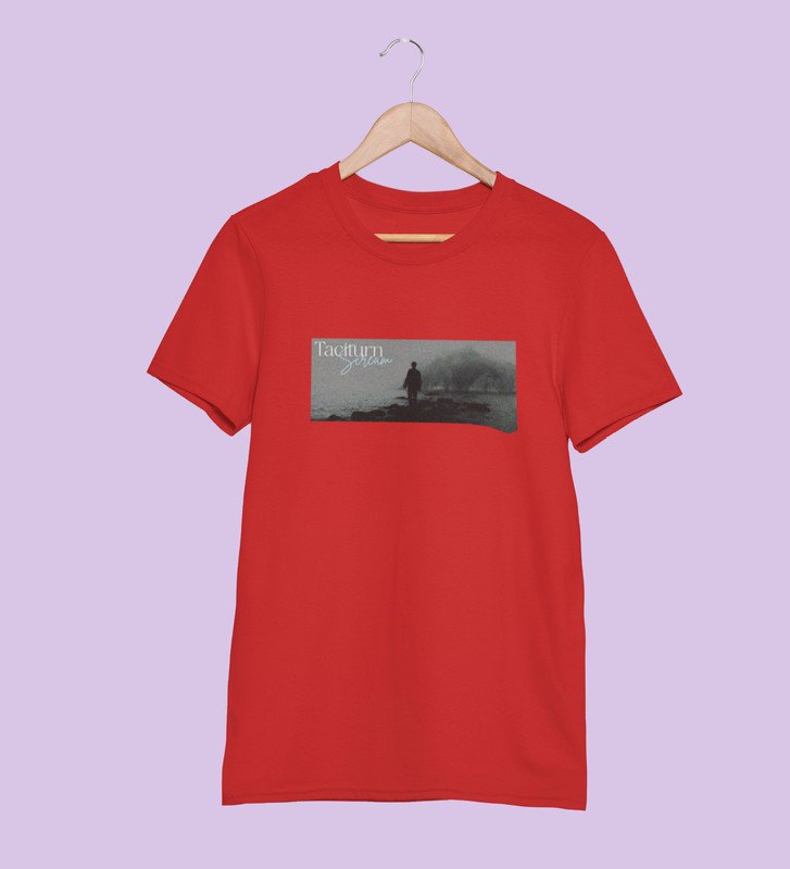 Taciturnity, Graphic Harmony: Red Modern Front Printed Round Neck Tee for Men