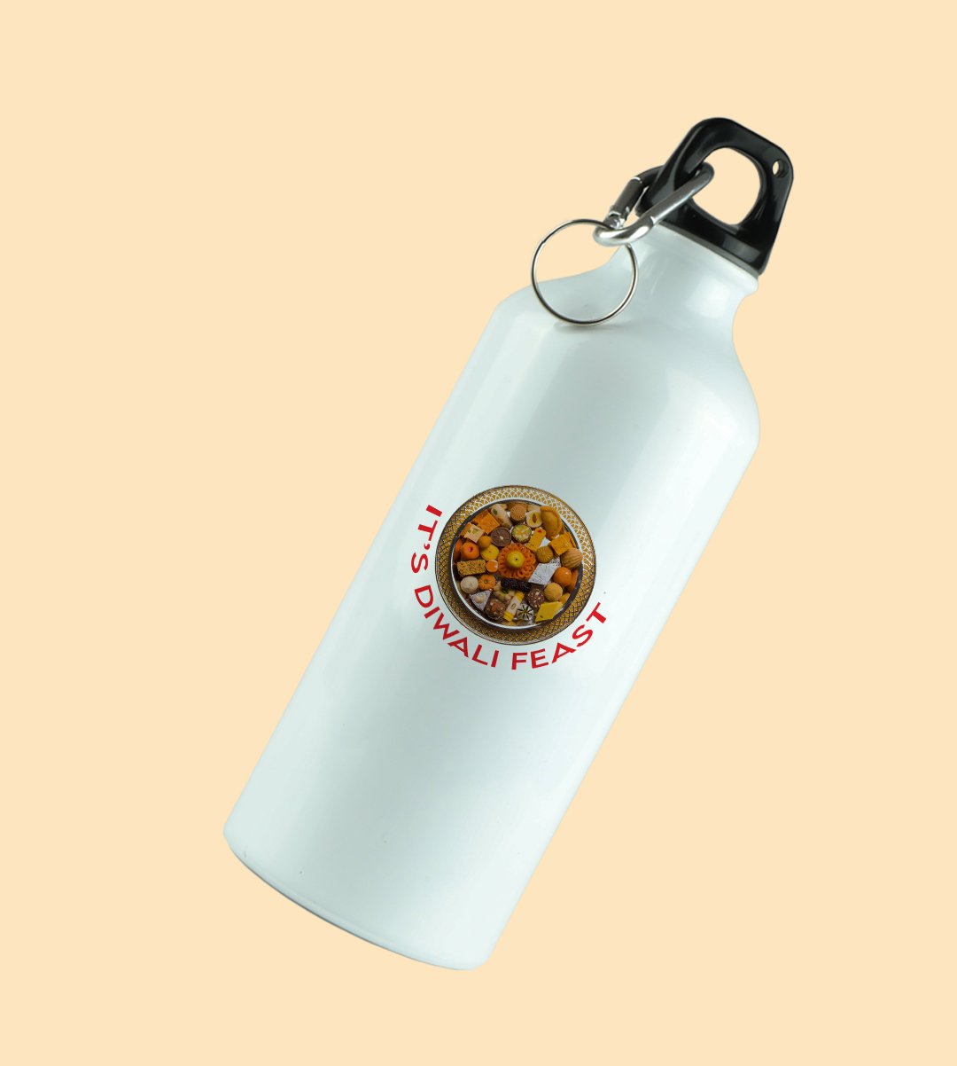 Celebrate the festival of lights with our exclusive "The Diwali Feast" sipper bottle. This vibrant sipper bottle features a plate full of festive delights, including traditional Diwali sweets and snacks. It's the perfect desk accessory to brighten up your workspace during the Diwali season. Bring the spirit of Diwali to your home or office with this beautifully designed sipper bottle, and make your work or gaming space more festive. Ideal for gifting or personal use, this sipper bottle adds a touch of joy and celebration to your daily routine.