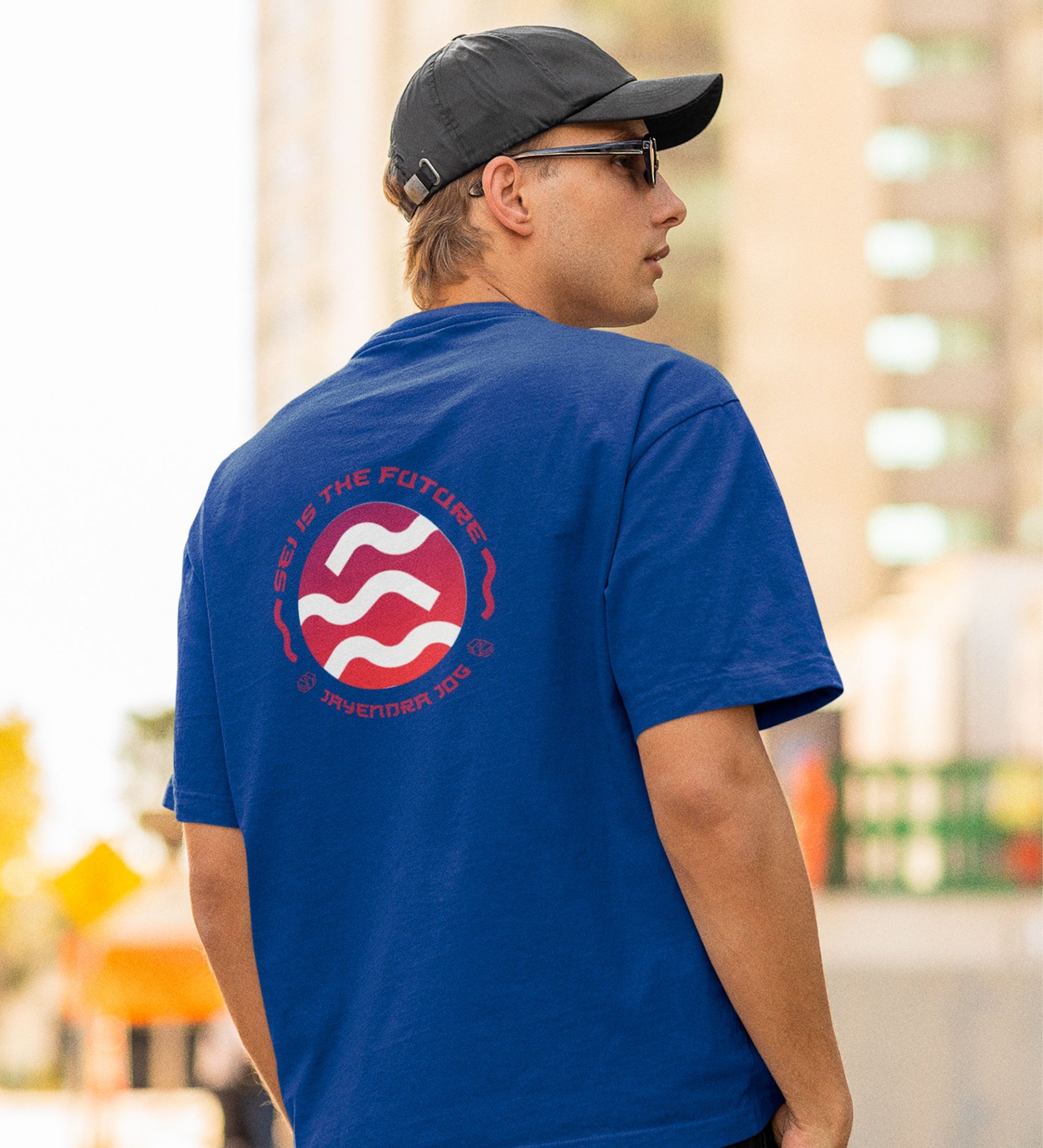 The Future Wings Blue Round Neck Cotton Half Sleeved Men's T Shirt with Printed Graphics