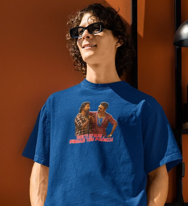 The Power Duo Blue Round Neck Cotton Half Sleeved Men T-Shirt with Printed Graphics