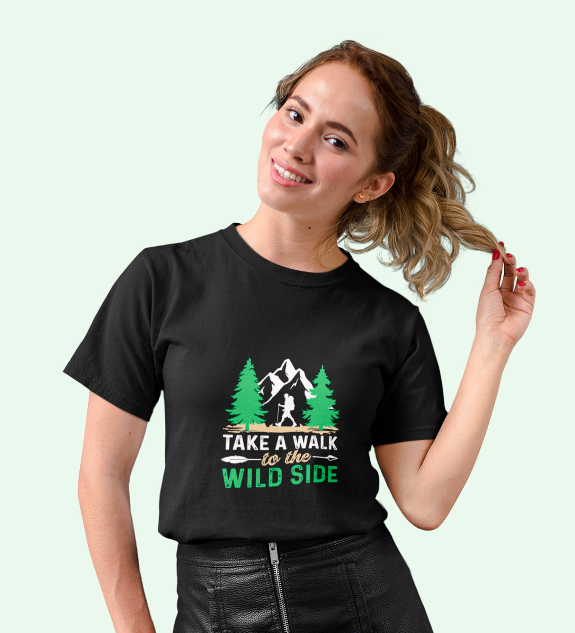 HopOfferTake A Walk Black Round Neck Cotton Half Sleeved Women's T-Shirt with Printed Graphics