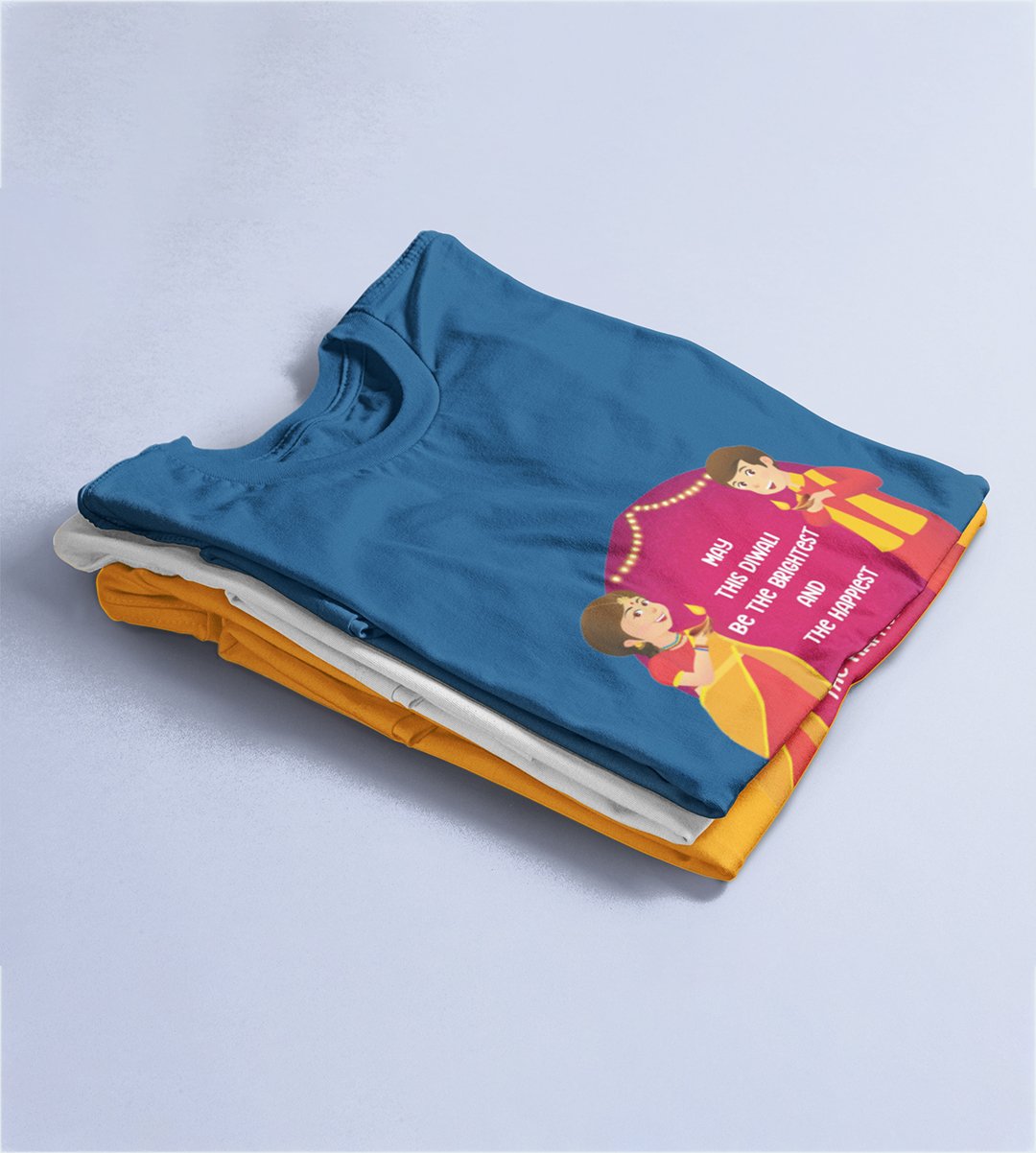 Diwali is a very auspicious, beautiful and one of the biggest festival of India. It is also known as the festival of lights which has full of zeal and you can make yourself submerged fully in this festival. The colourful rangoli designs make the festival more attractive. With this amazing designs of diwali theme printed Tees, you can shine like a star during this festive season with this cotton half sleeve Tshirts. You can pair our t-shirts with trousers and denim of your choice and make it a weekday smart casual or weekend wear. This is durable. This tshirt is smooth and soft which makes you comfortable to wear during festive seasons. The printing in it is durable and odourless. It has five sizes, S,M,L,XL,XXL. The Tshirt colour is intact even after repeated washes. It can be kept in your wardrobe and hangers. Please avoid washing mashine to clean this Tee, it may affect the print. Hand wash only. We have brought you many such designs printed on our different colour Tshirts to choose from. Grab it now.