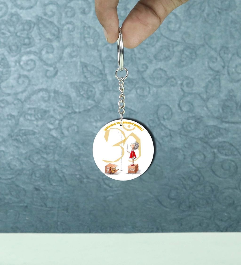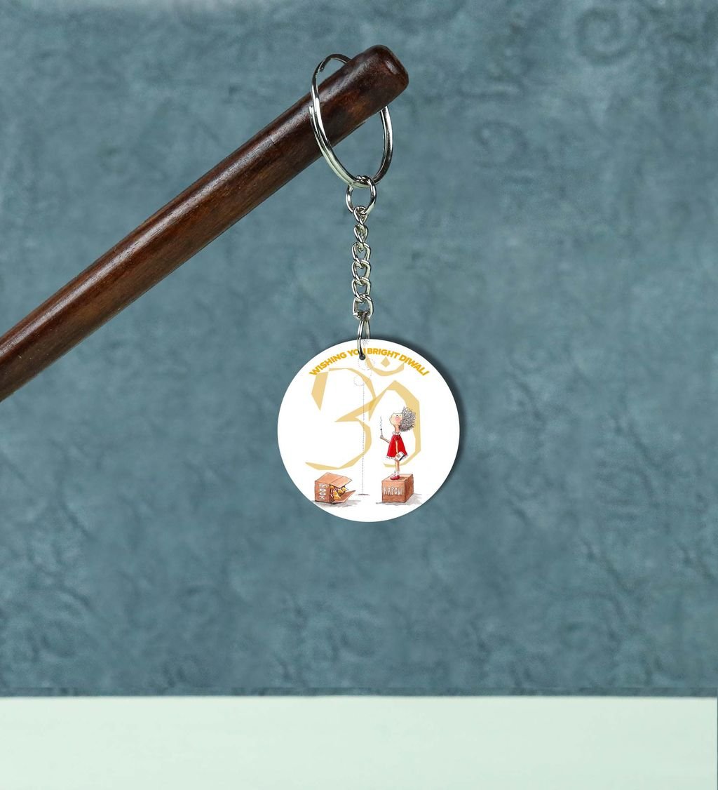 Traditional Lights and Festive Warmth Diwali Printed Round Keychain Pack of 2