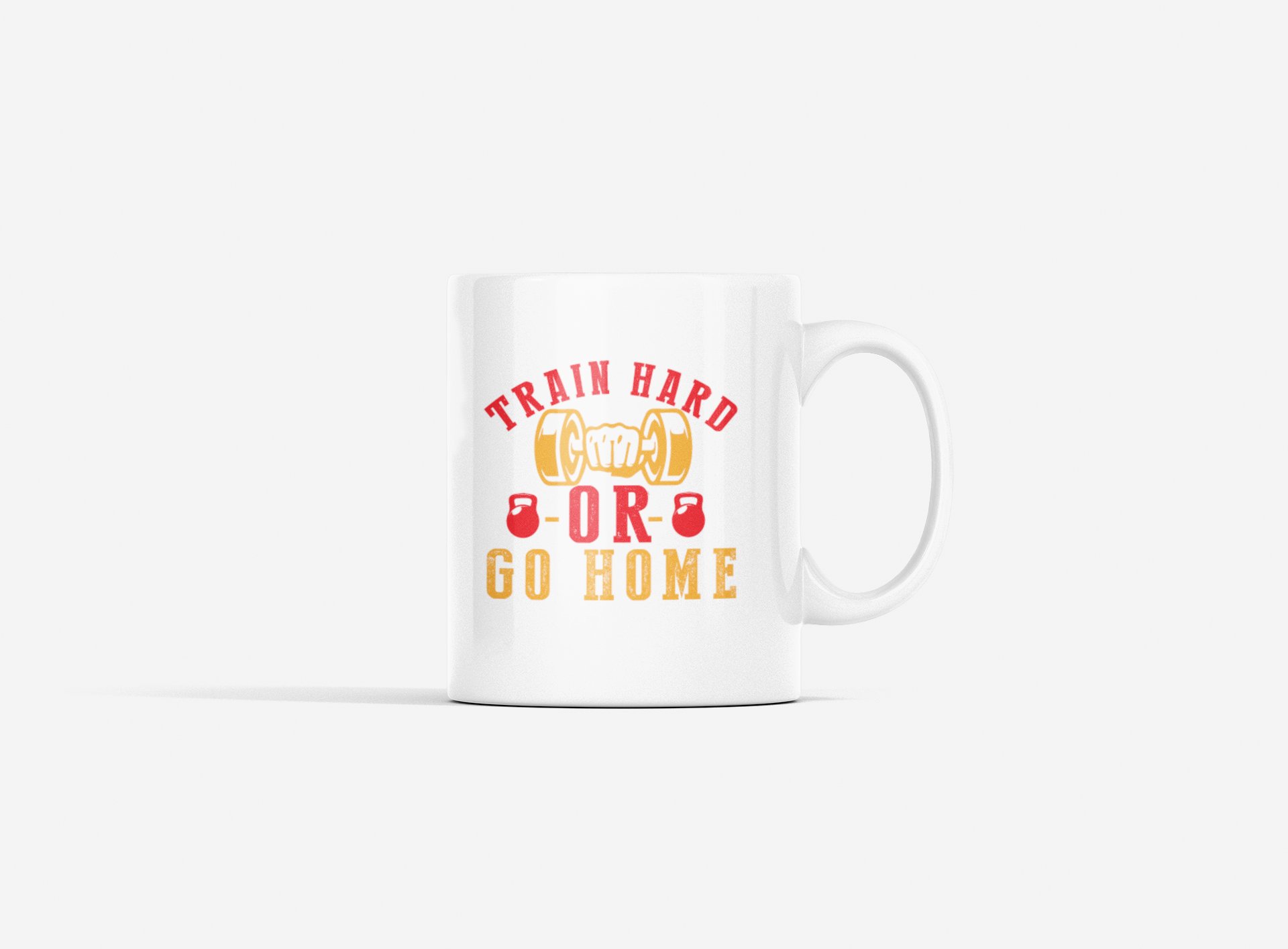 Train Hard or Go Home - gym themed printed ceramic white coffee and tea mugs/ cups for gym lovers
