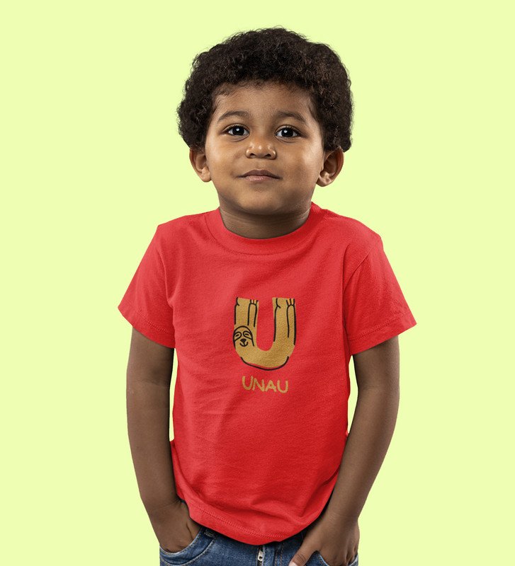 Ugly Unau, Boys Cotton Text Print Tshirt (Red)
