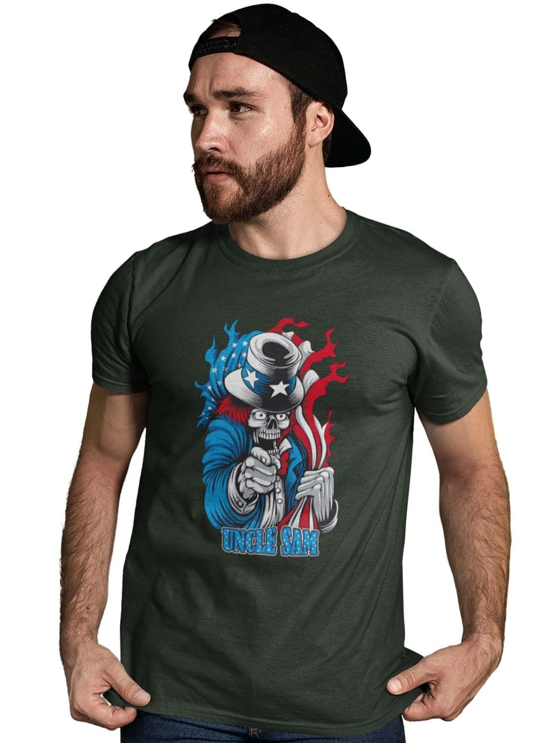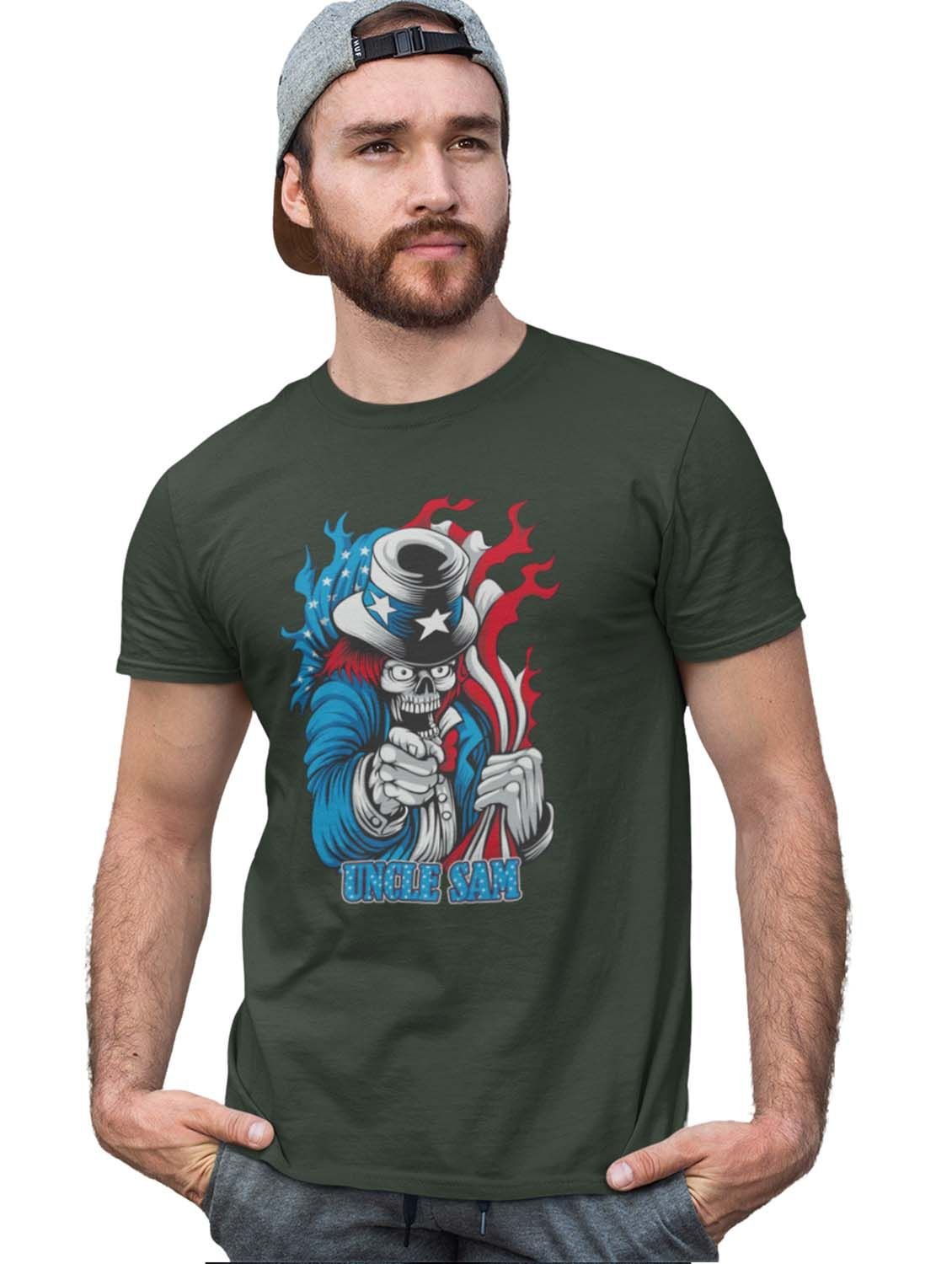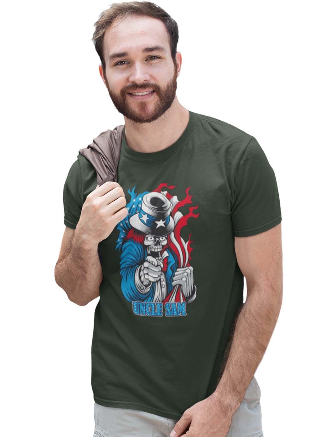 Uncle Sam Green Round Neck Cotton Half Sleeved T-Shirt with Printed Graphics