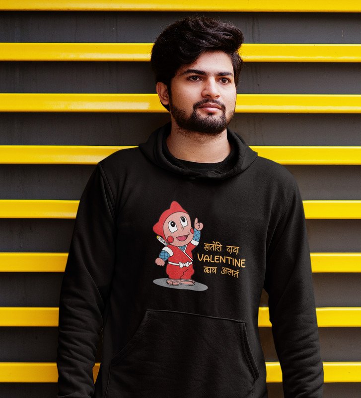Valentine Ninja: Printed (black) Hoodies For Singles