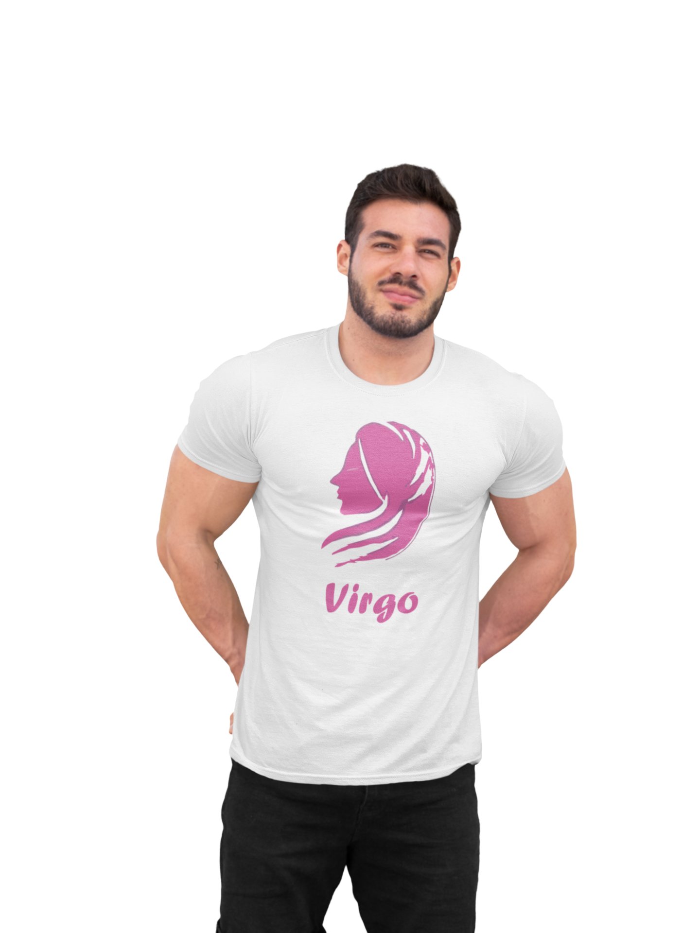 Virgo (BG Pink) (White T) - Printed Zodiac Sign Tshirts - Made especially for astrology lovers people