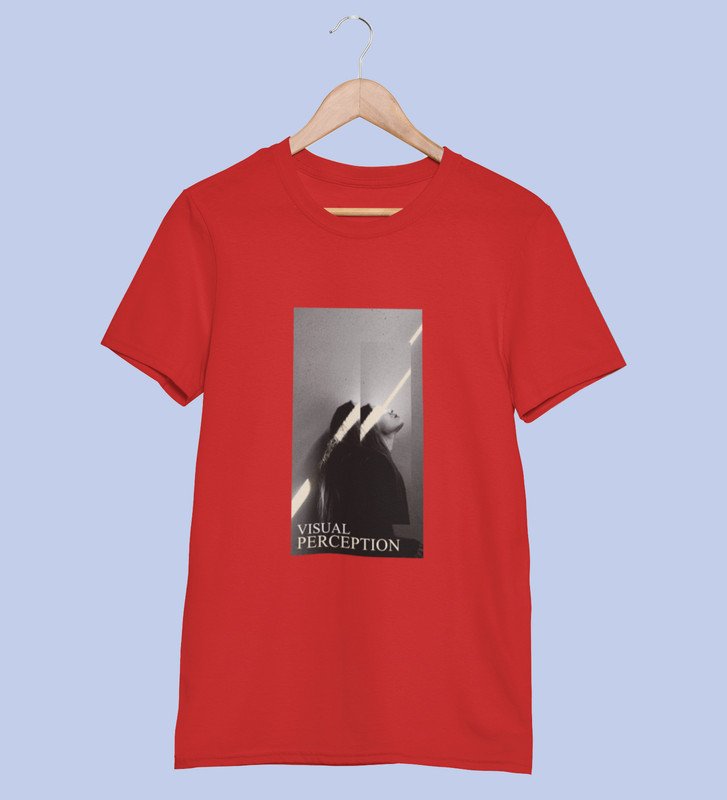 Visual Artistry, A Modern Maverick: Red Men's Oversized Tee with Eye-Catching Front Print
