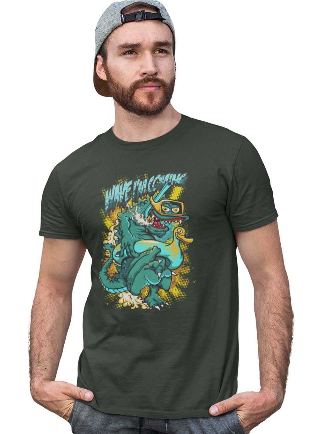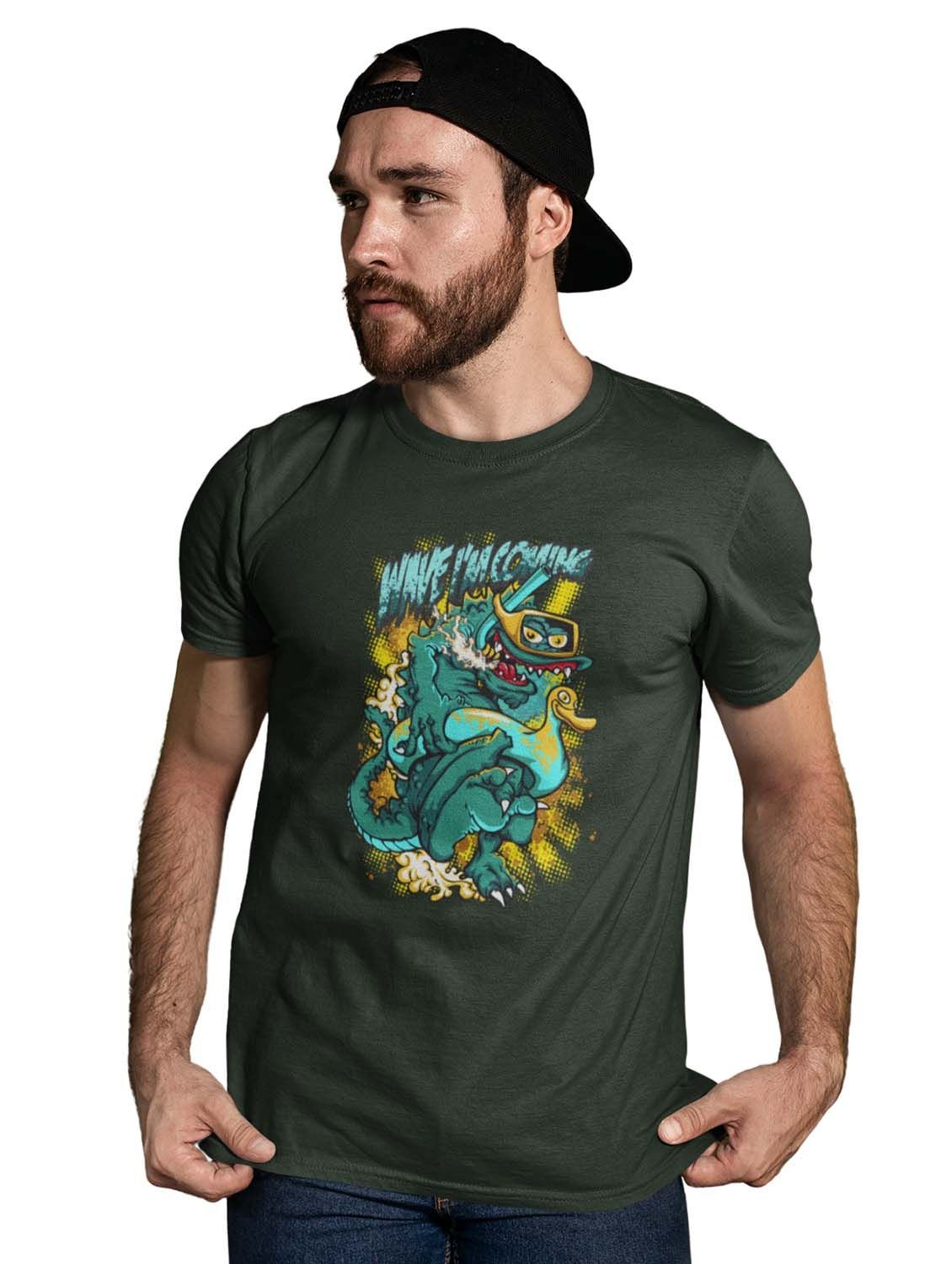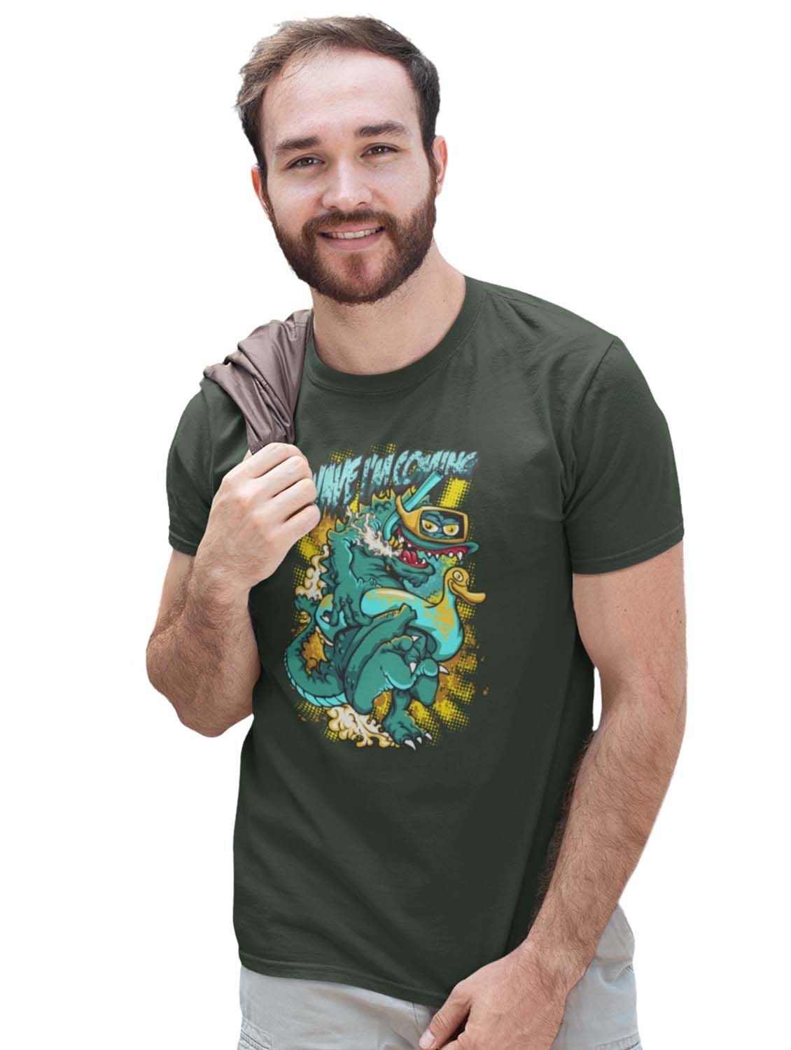 The Wave Monster Graphic Printed Green Cotton Round Neck Half Sleeves Tshirt