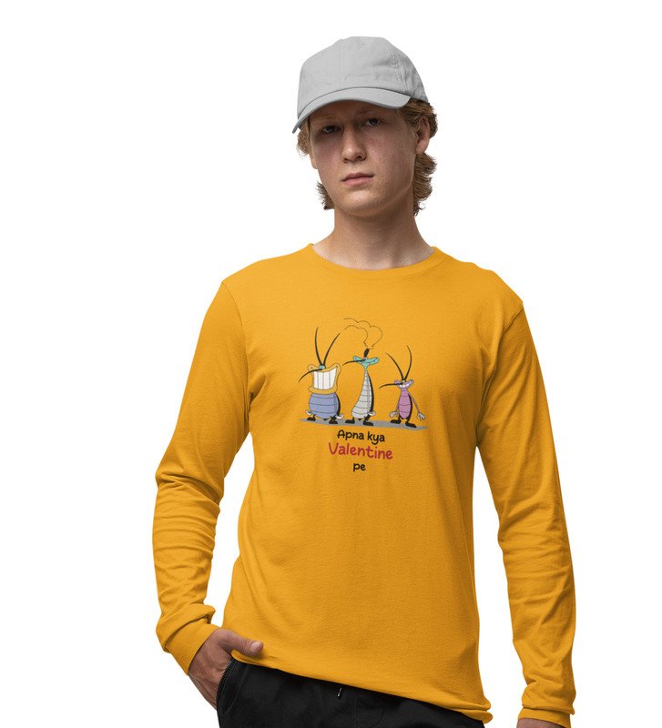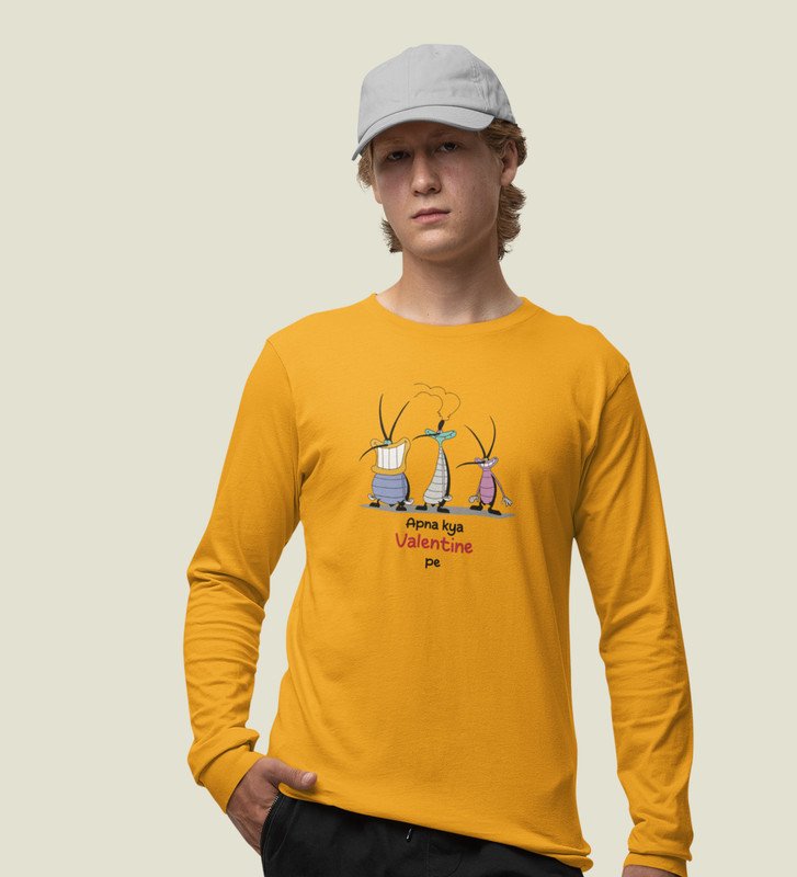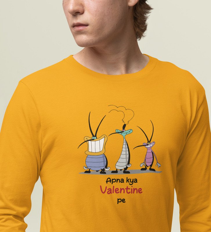We Don't Have Valentine: Sublimation Printed (yellow) Full Sleeve T-Shirt For Singles