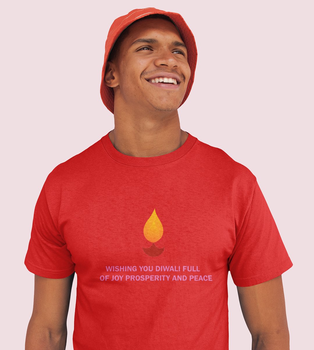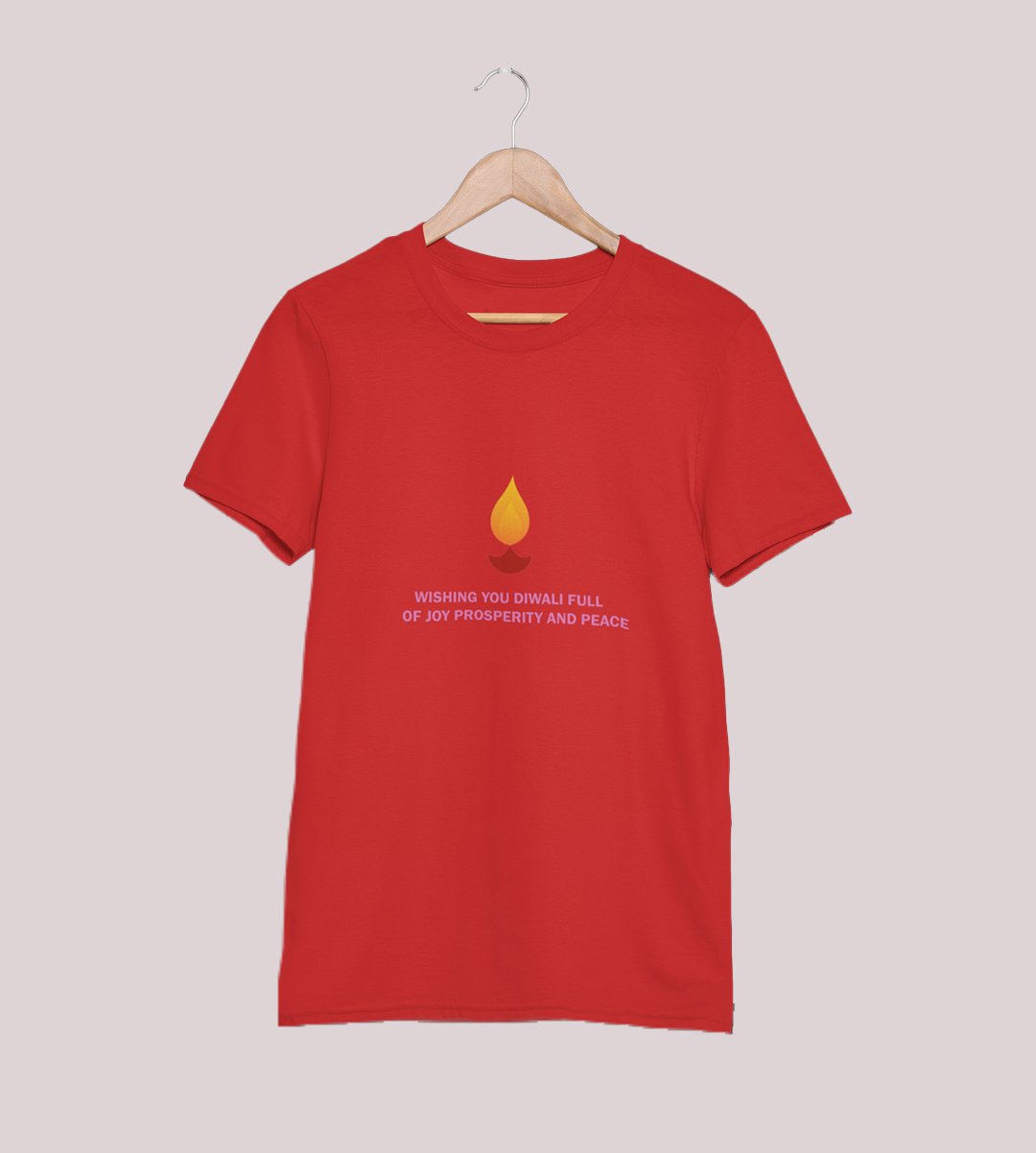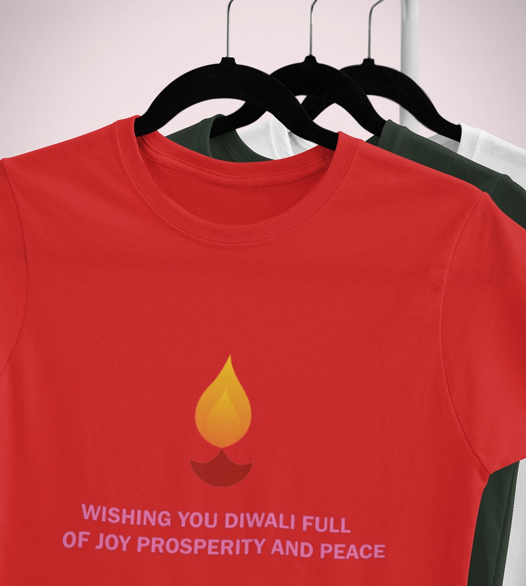 Wishing you printed diwali themed unisex round neck blended red t-shirt specially for diwali festival