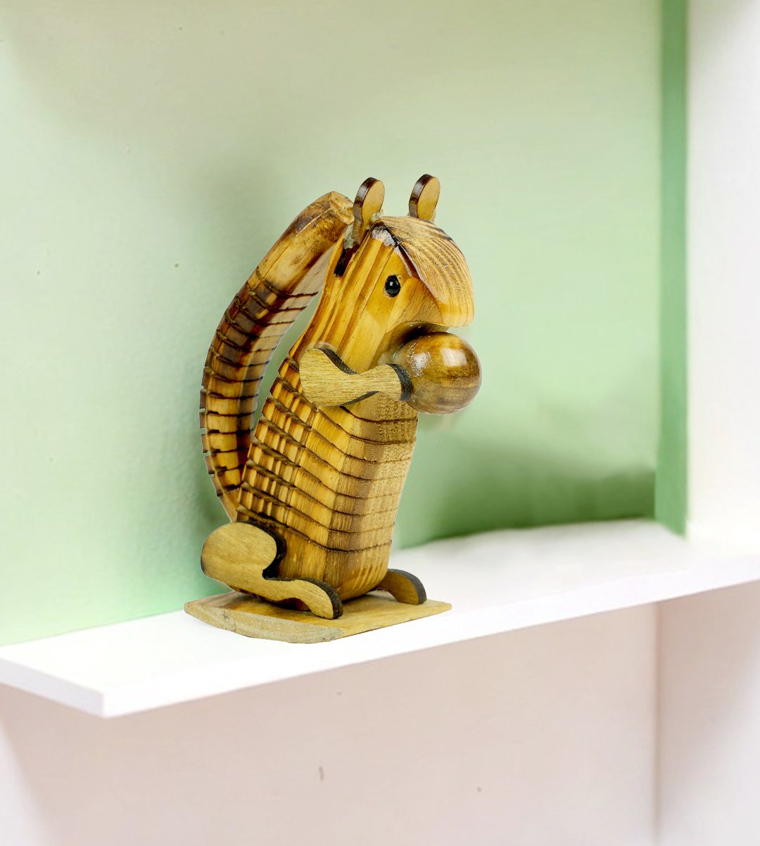 Wooden lucky squrrel toy game is used to play for fun. It can also be placed as a showpiece item. It's miniature details looks cute and this playing and decorative products used to decorate your home, children's room. Best objects that we have brought for you all. It is used to keep in cupboards, showpiece rack also. It is made up of wood with great finishing. Gifting material too. Grab it now.