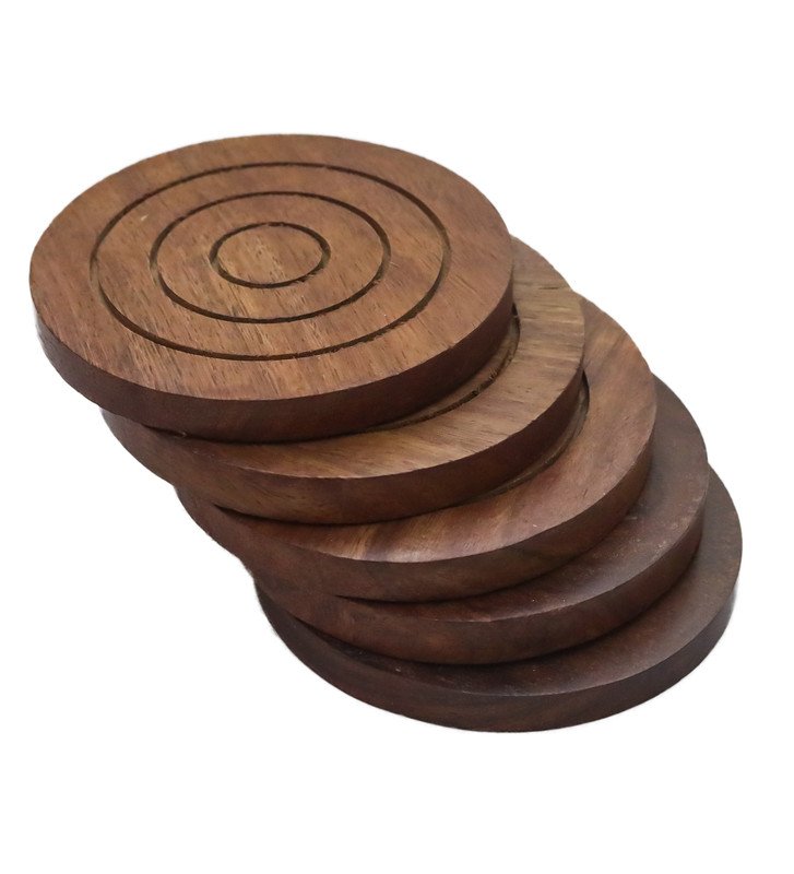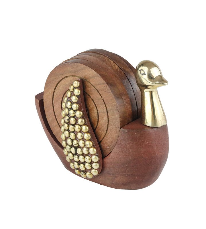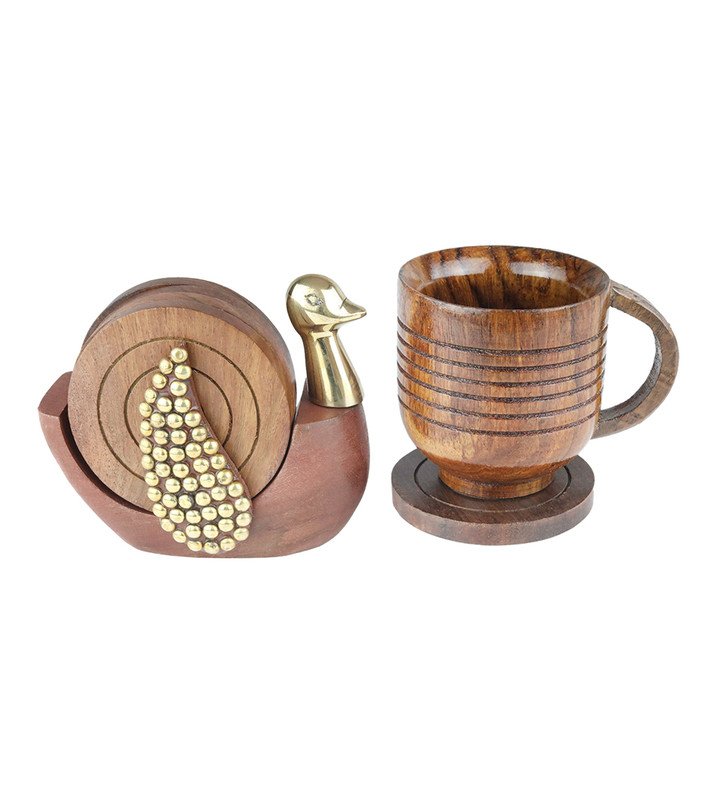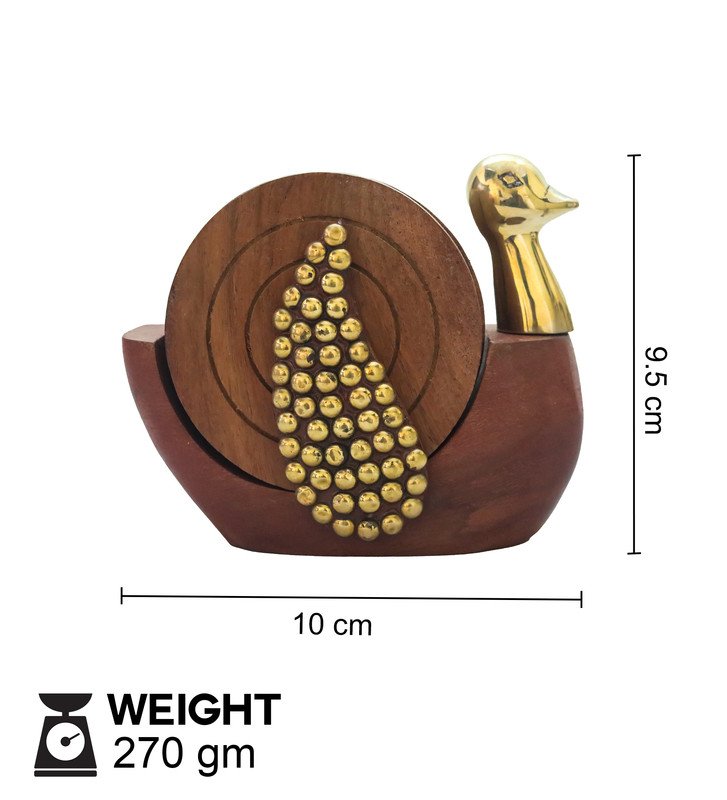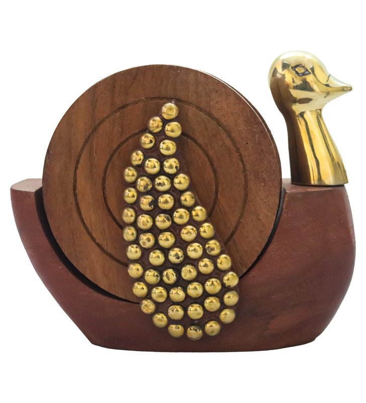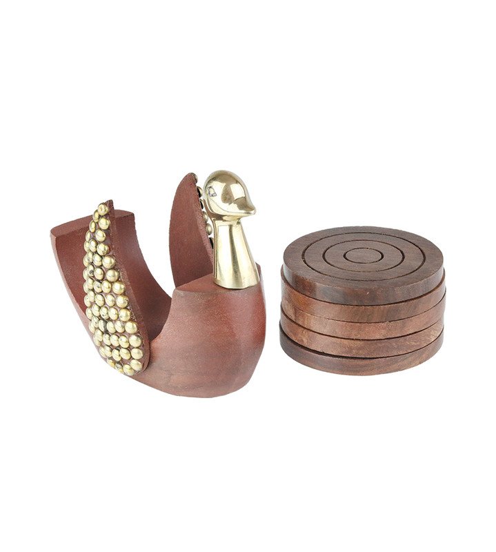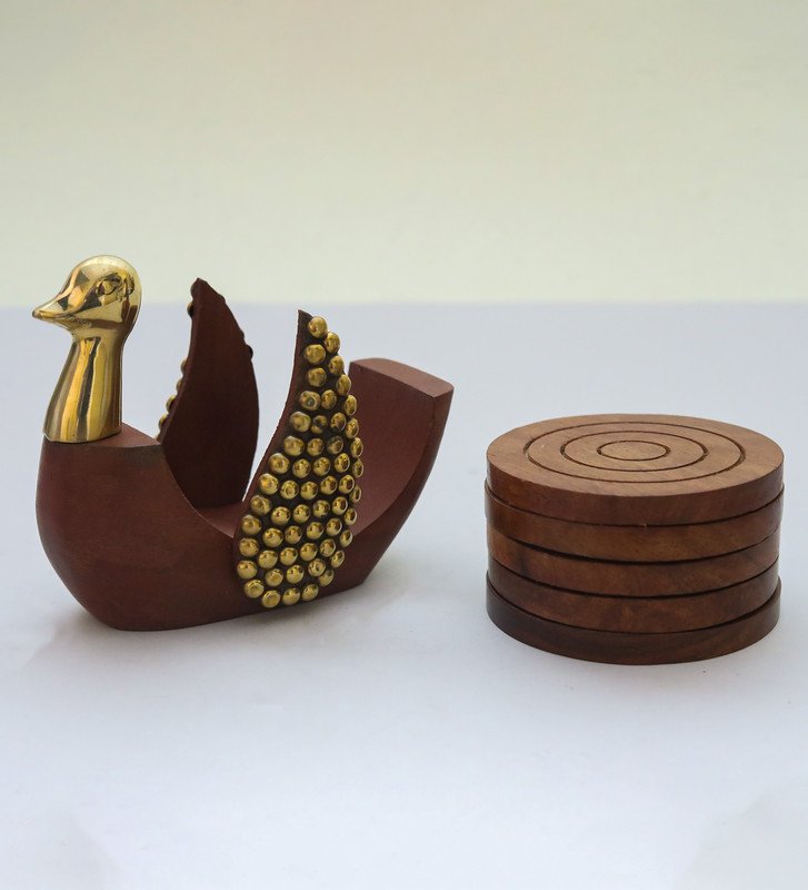Wooden Round Coasters With Wooden Swan Holder,For Beverages On Table- Set Of 5