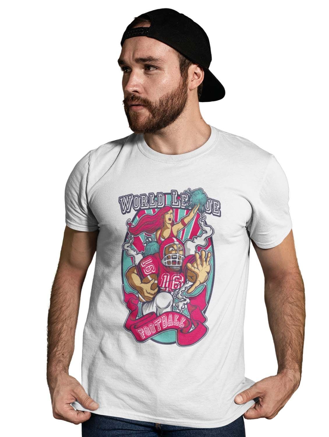 World Football League Round Neck Cotton Half Sleeved T-Shirt with Printed Graphics