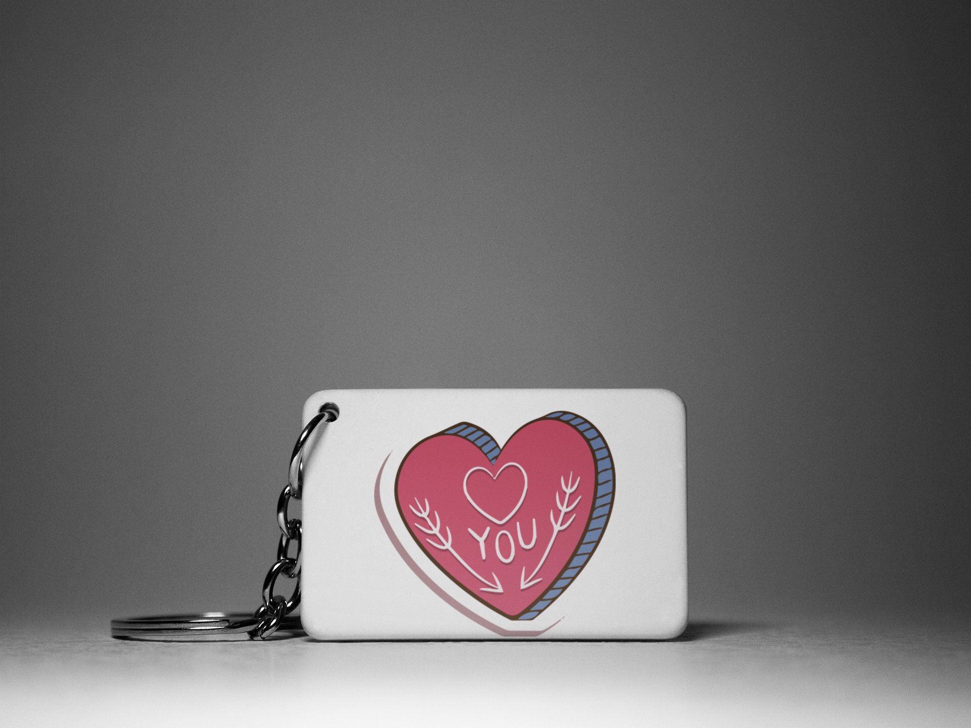 YOU Text In Pink Heart -White -Valentine's Special Keychains(Pack Of 2)